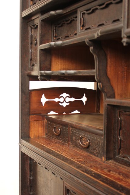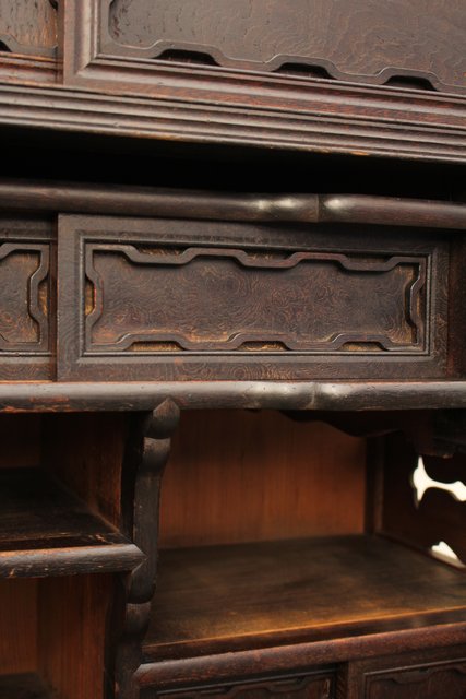非常に凝った細工の茶箪笥/飾り棚