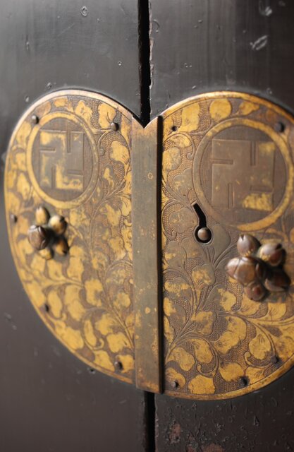 中央の装飾金具の作りは華鬘(けまん)の様 卍の文様などから
