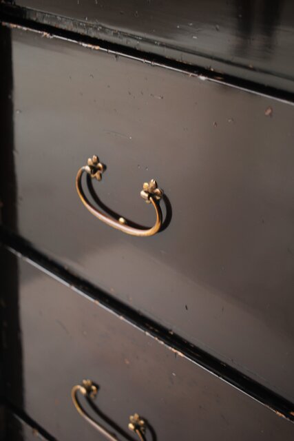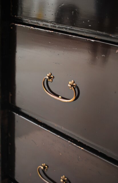 漆黒の総桐箪笥を華やかに装飾