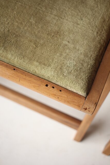 座面は硬化し 座面裏の軸が一本欠損