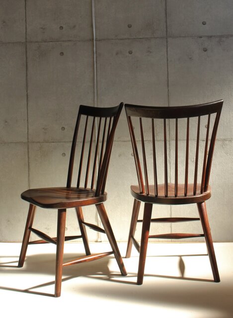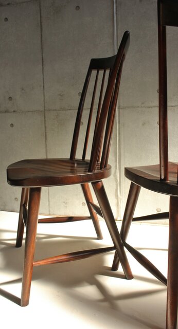 松本民芸らしいしっかりとした作りのダイニングチェアー