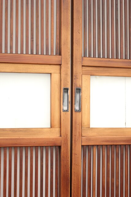 感覚の良い一枚板の欅を腰板とした上質な建具