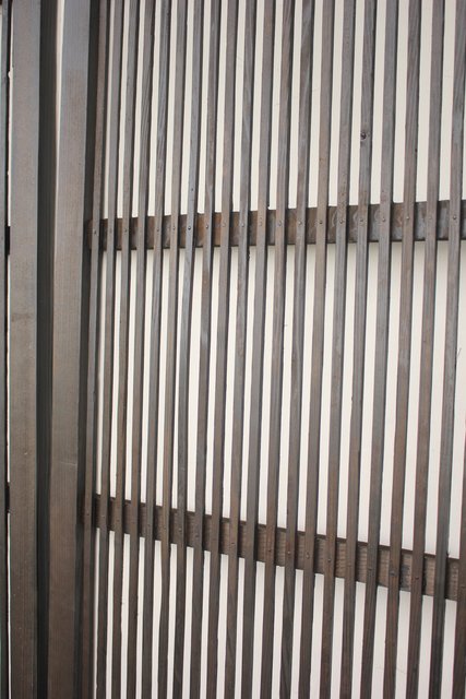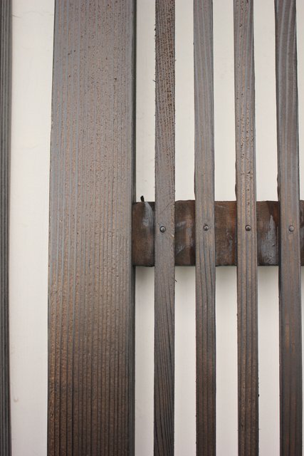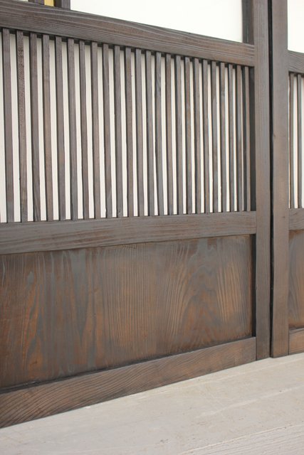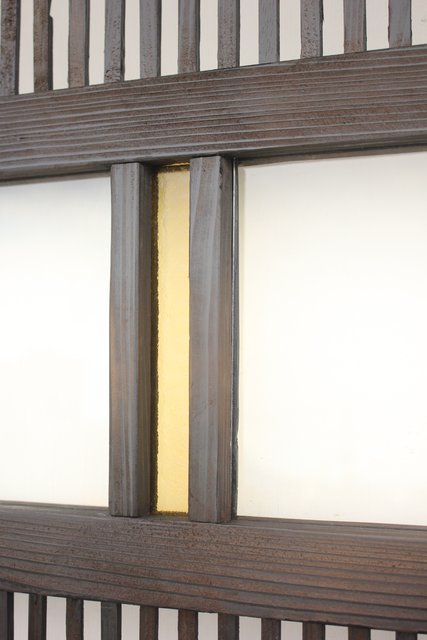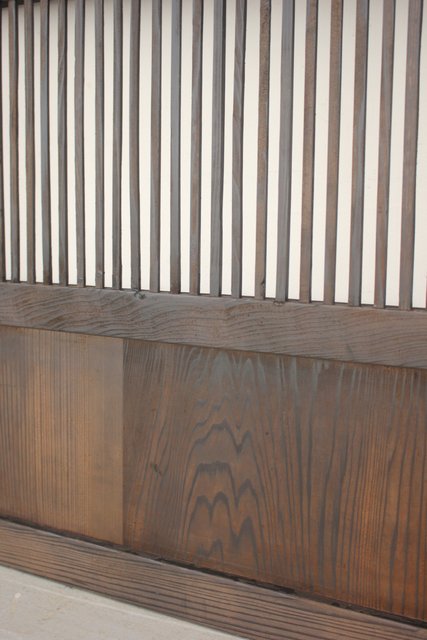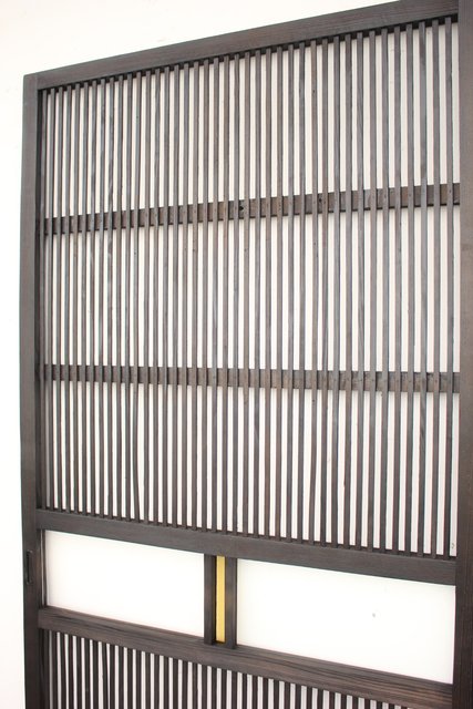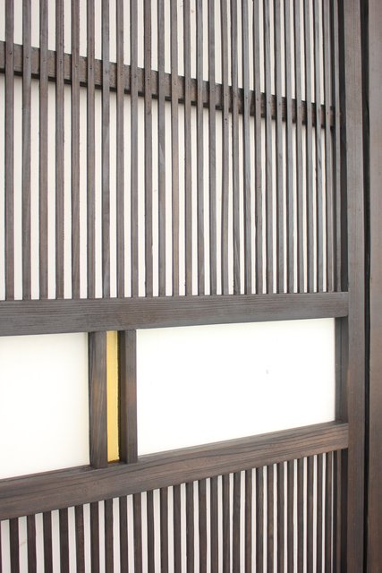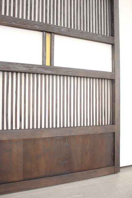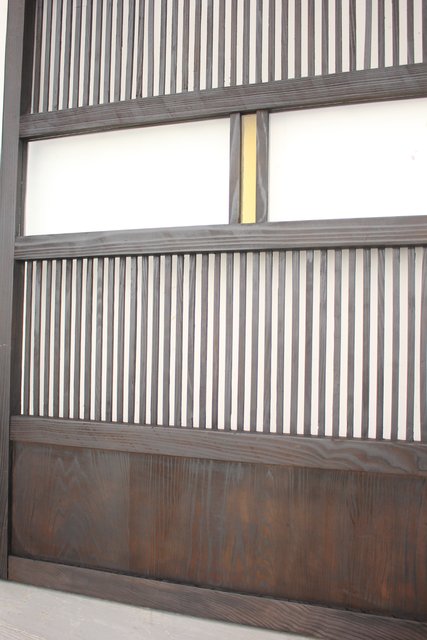 黄色ガラスがワンアクセントとなった珍しい格子戸