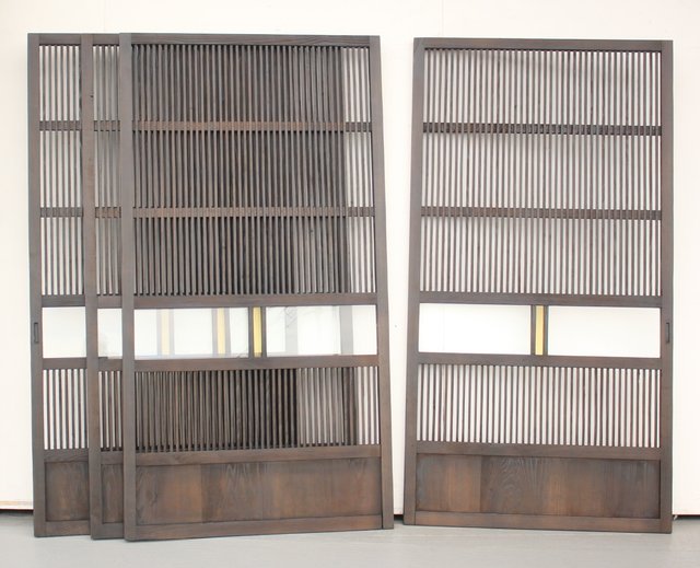 黄色ガラスの黒格子戸 4枚1組 L1005