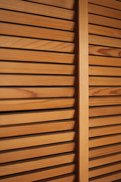 格子戸を作成するようにルーバー戸を作成したまじめな建具です