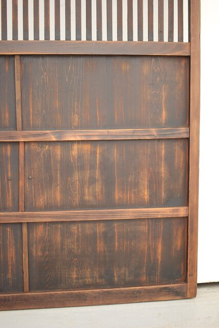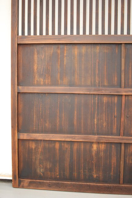 腰板には獅子金具もついて まるで蔵戸のような格子建具