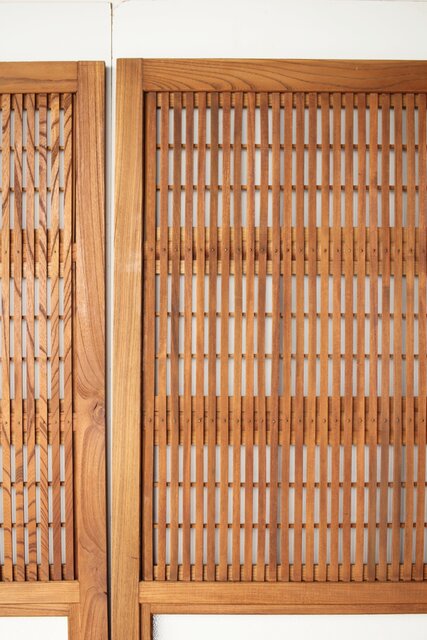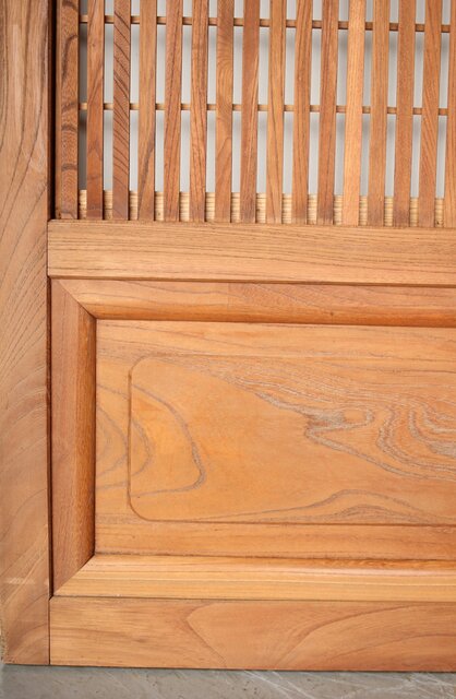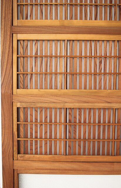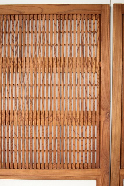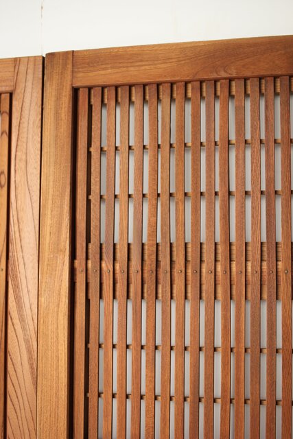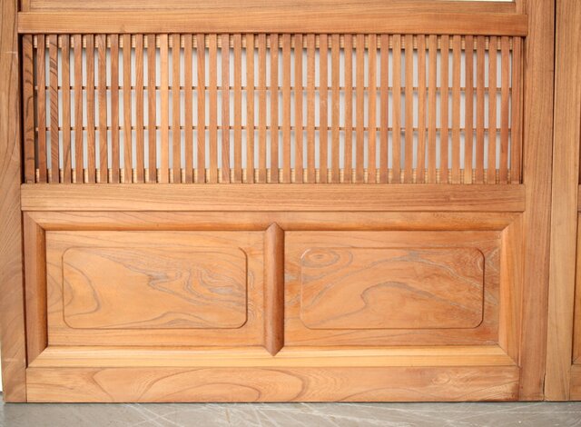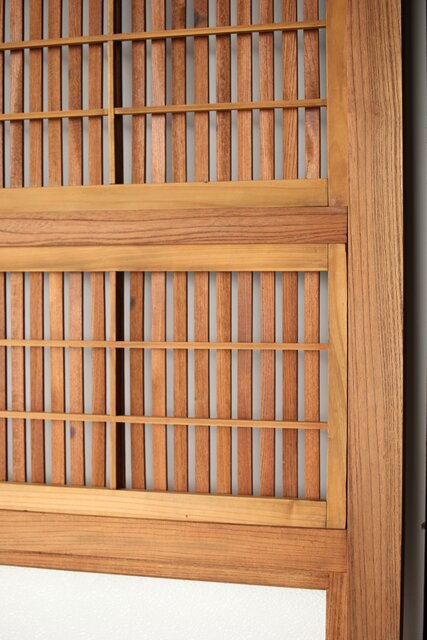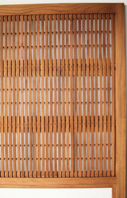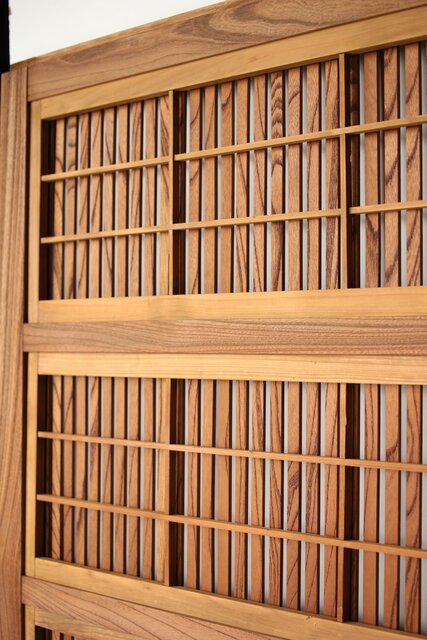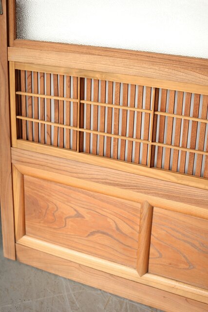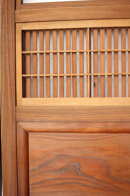 総欅製の格子戸で反りが無いものはほとんど皆無ですが かなり反りの少ない方だと思います