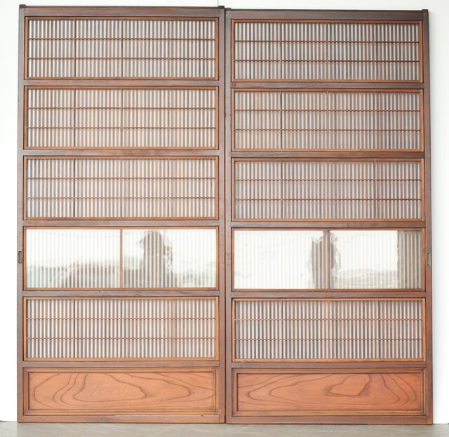 障子枠付 格子戸 2枚1組 L1105 上から下まで格子は意外と少ないです