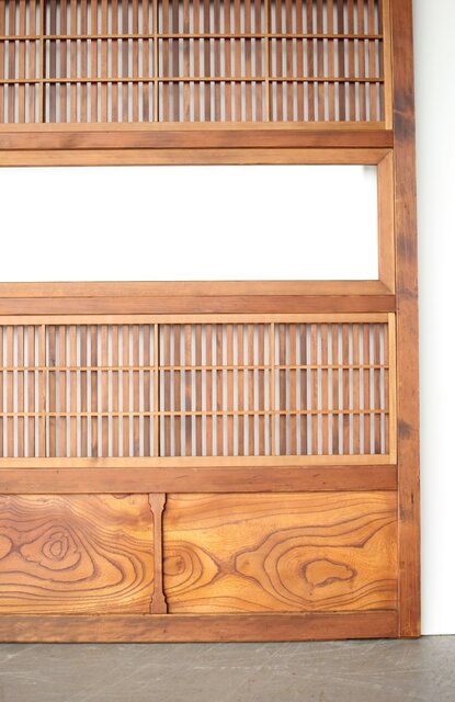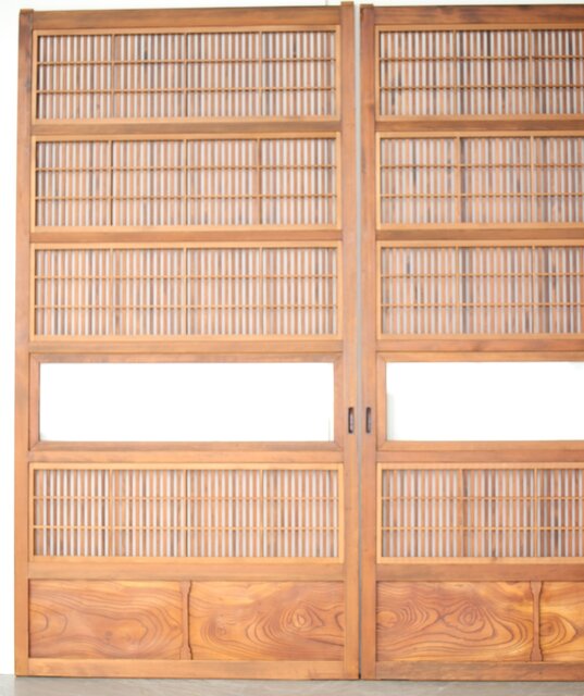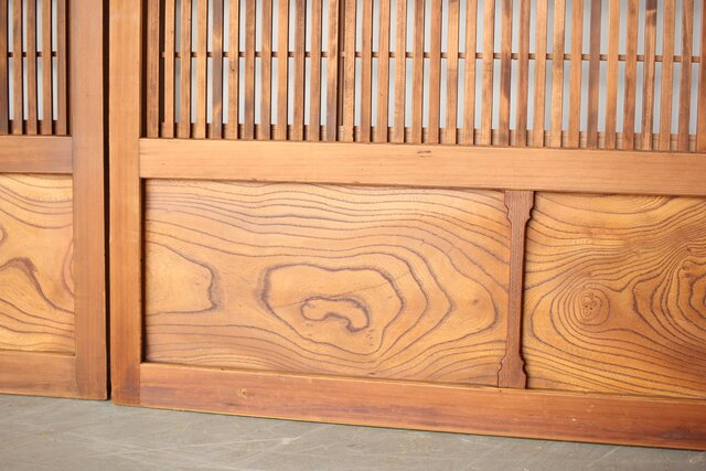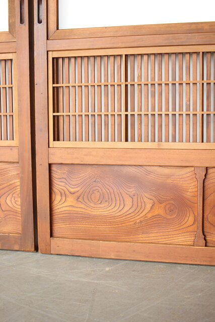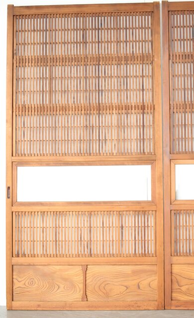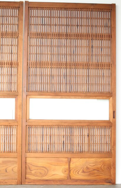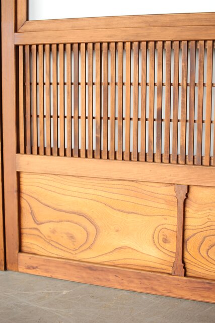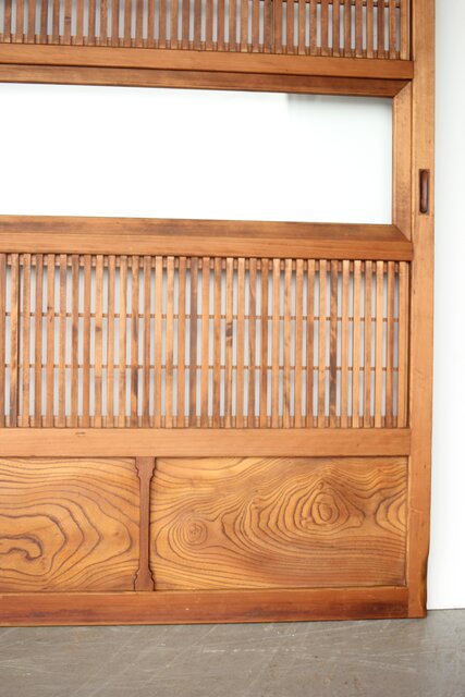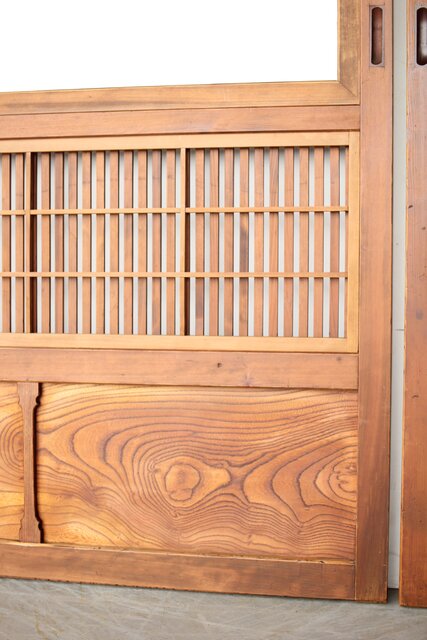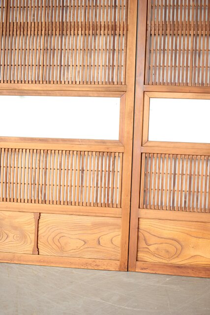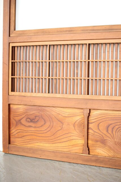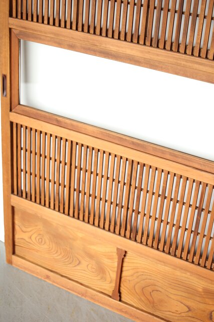 障子枠付 白木格子戸 4枚1組 L1106 腰板は欅 木目が素敵です