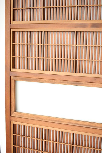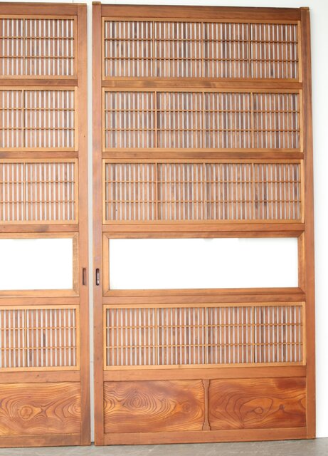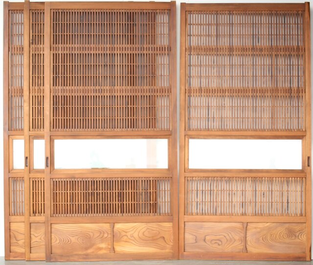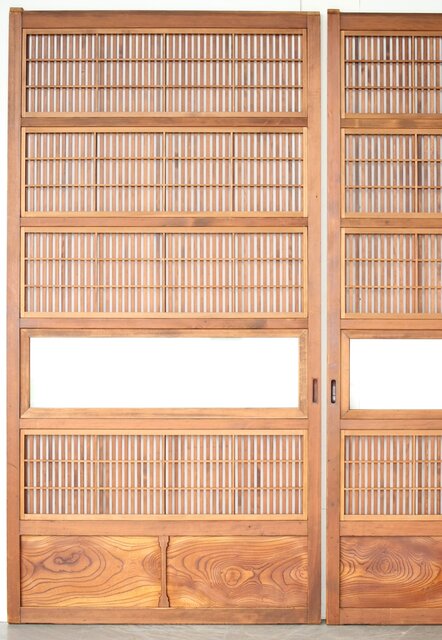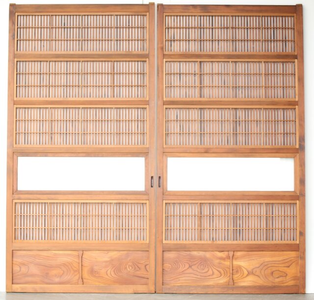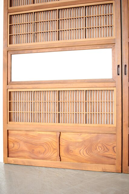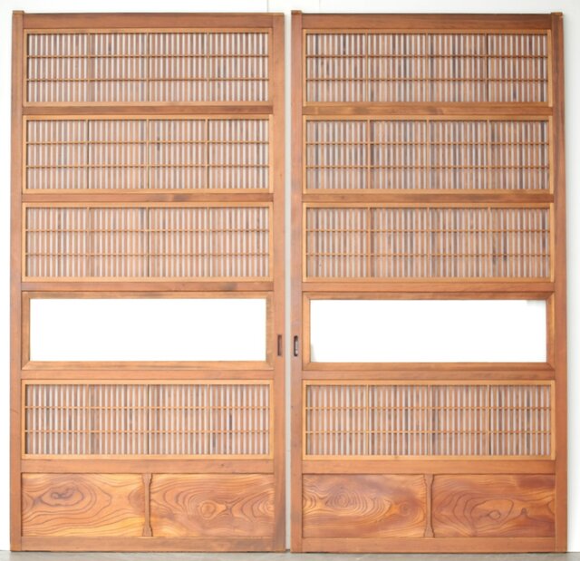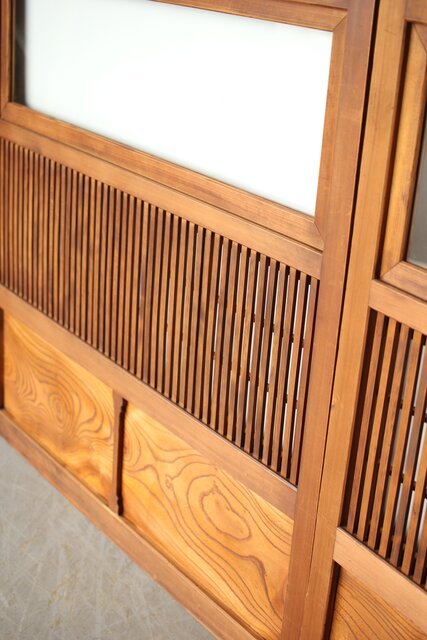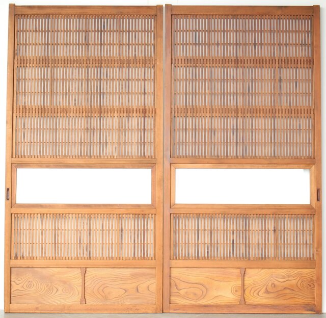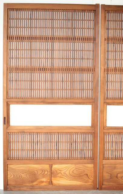 障子枠付 白木格子戸 4枚1組 L1106 腰板は欅 木目が素敵です