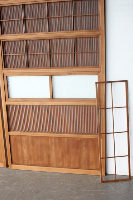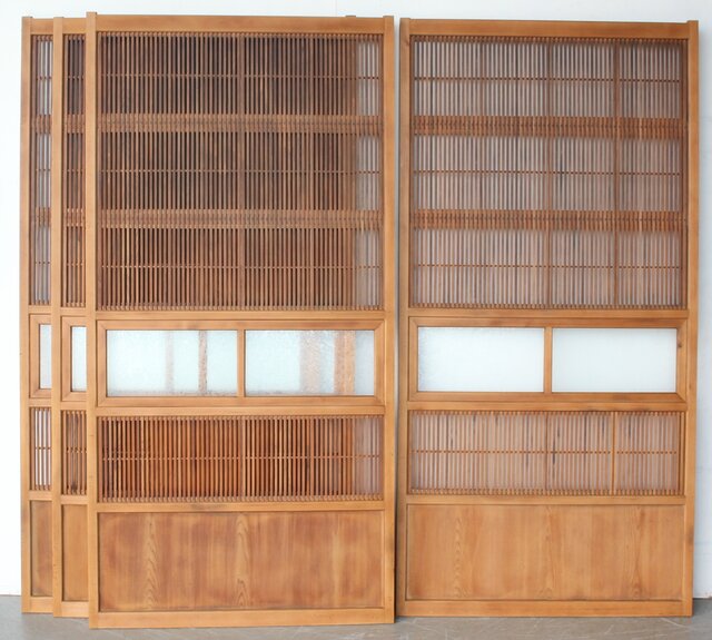 障子枠付 にかわガラス格子戸 4枚1組 L1185