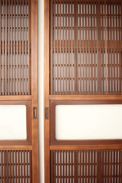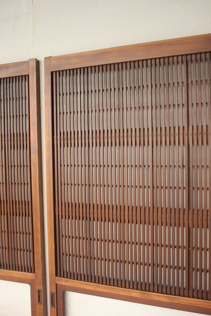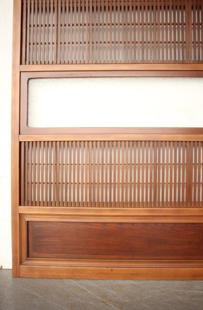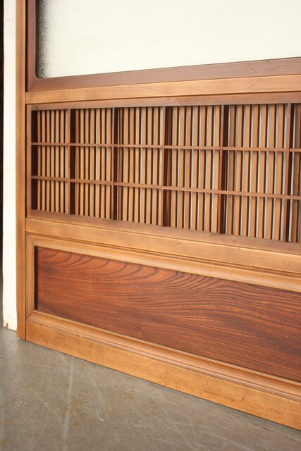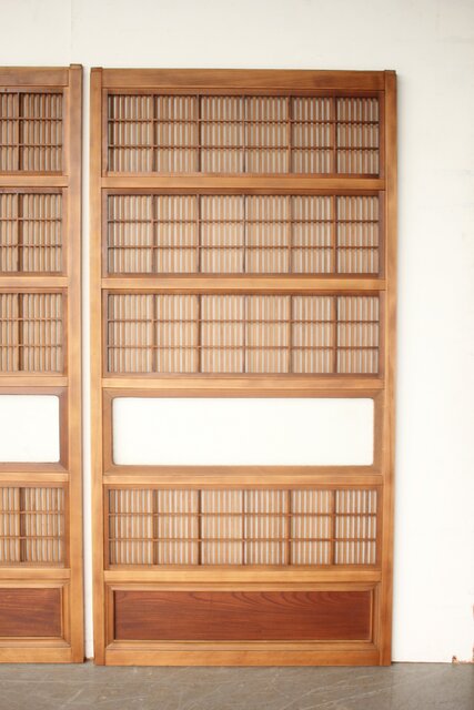 腰板欅 障子枠付 格子戸 2枚1組 L1193
