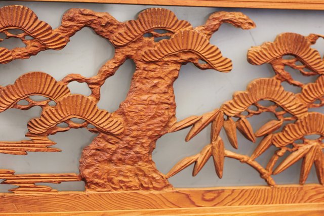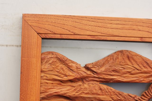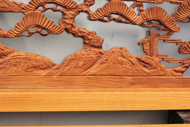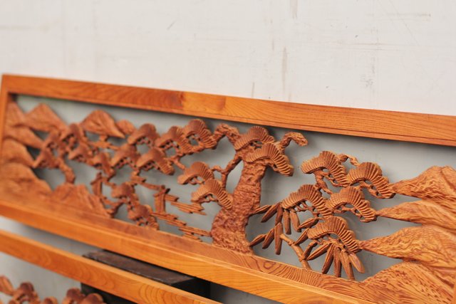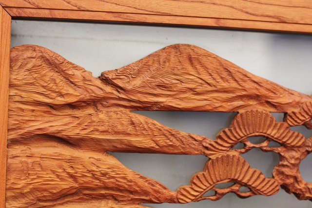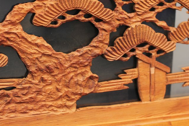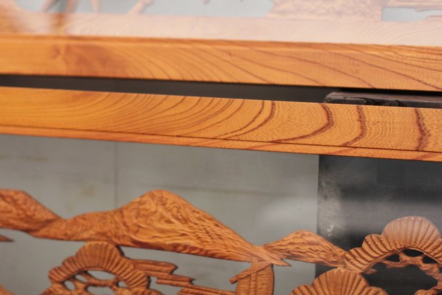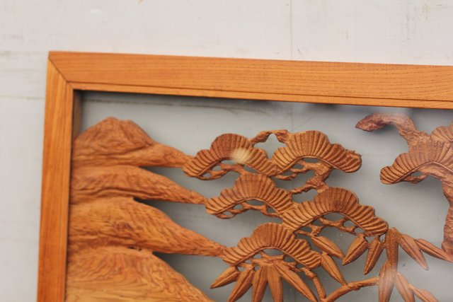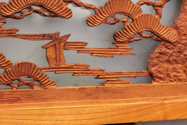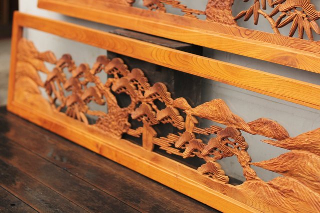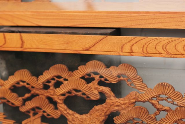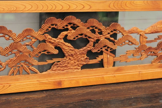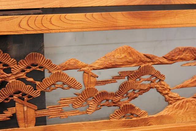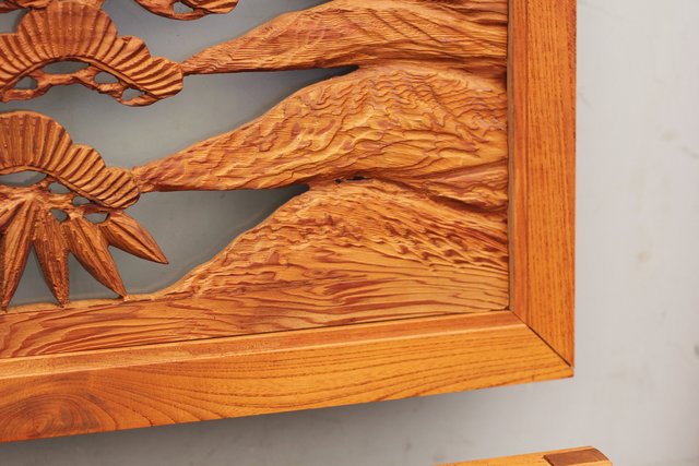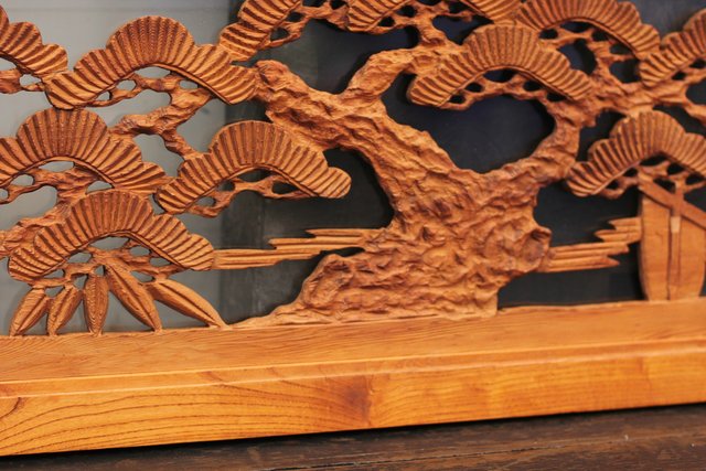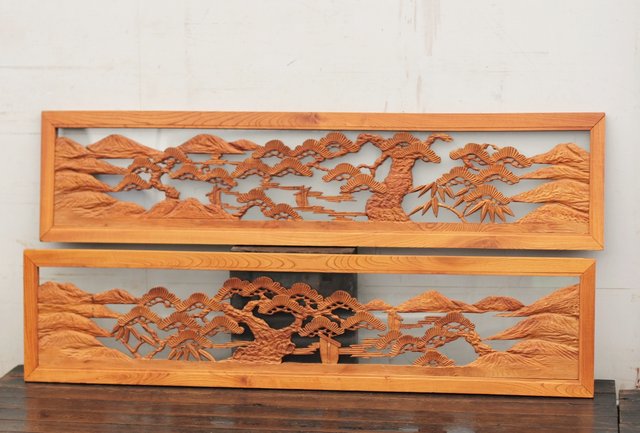 硝子入欅枠の木彫欄間 2枚1組 R1390
