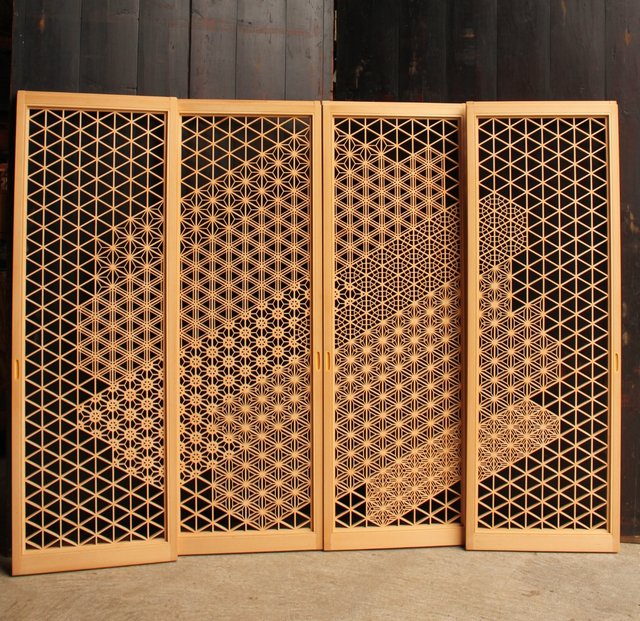 更に四種の意匠を加えた とてもデザイン性の高いの最高級の特注組子欄間