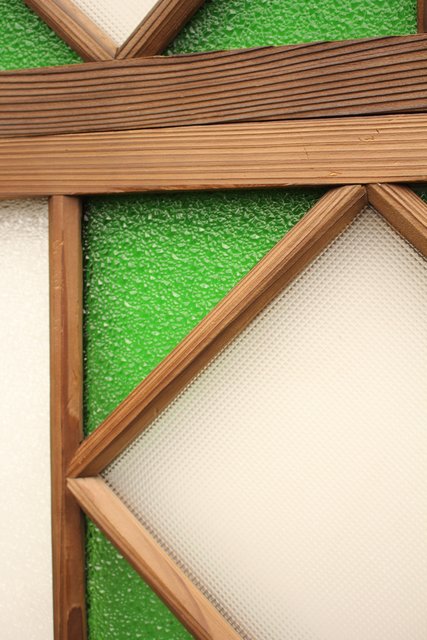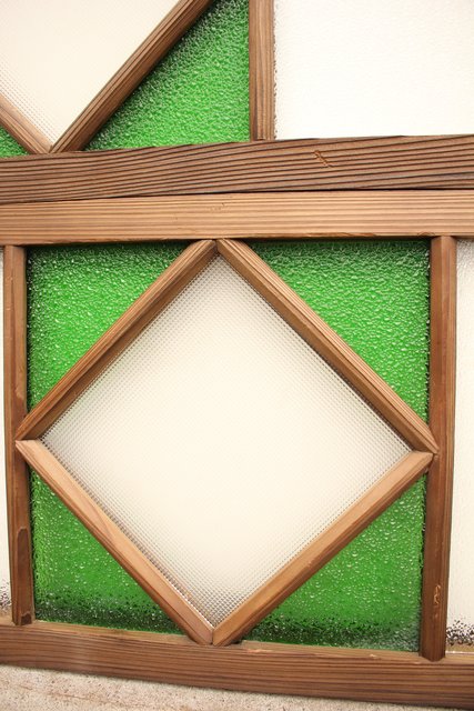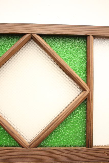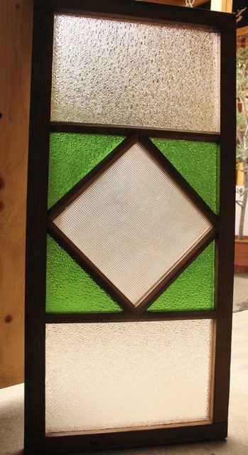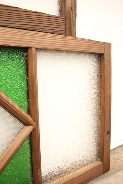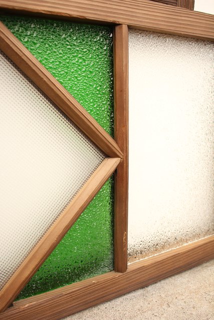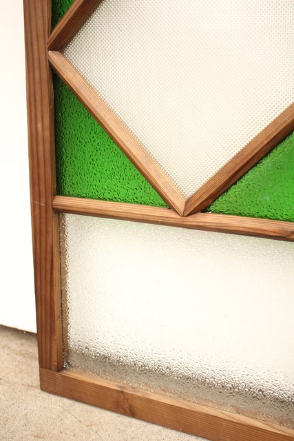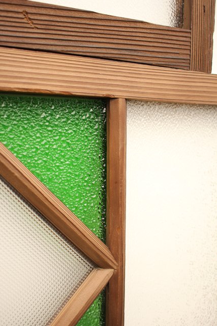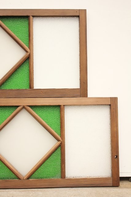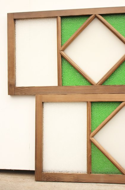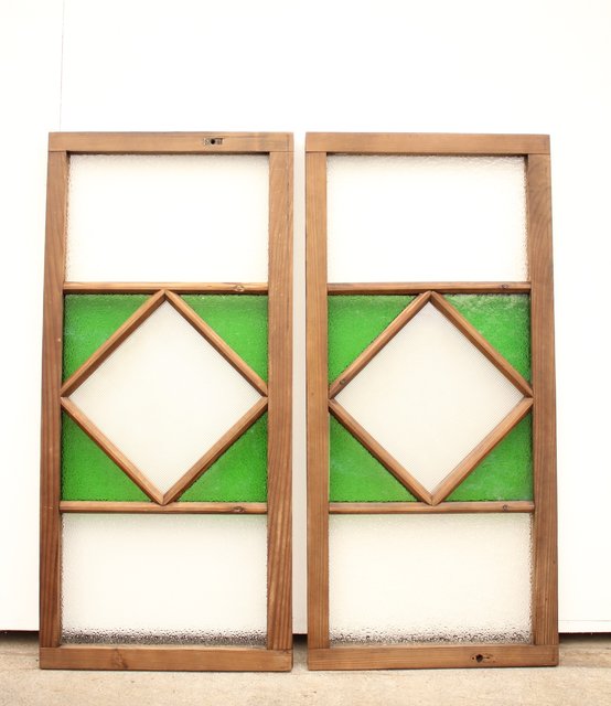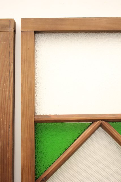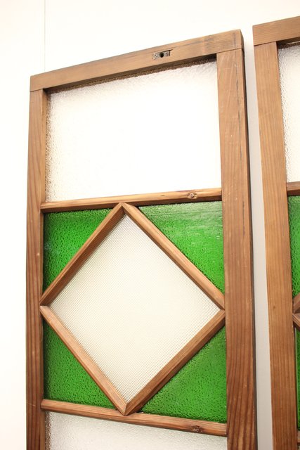 ダイア緑色ガラス欄間 2枚1組 R2198Y