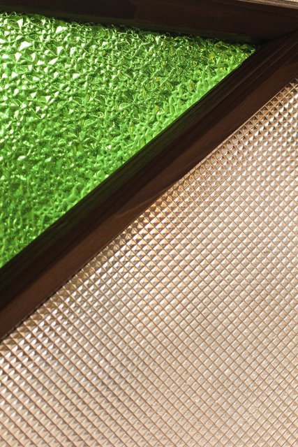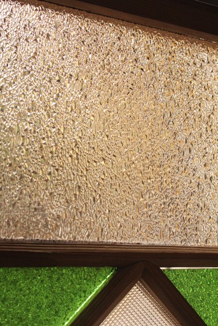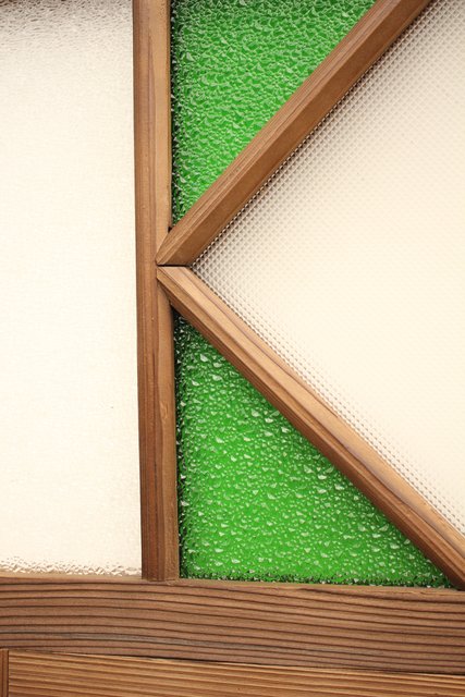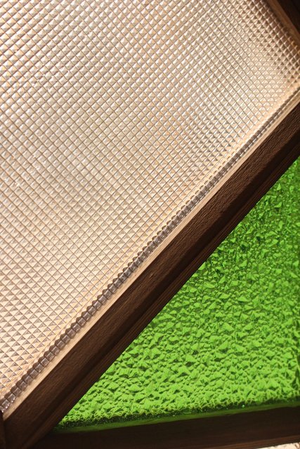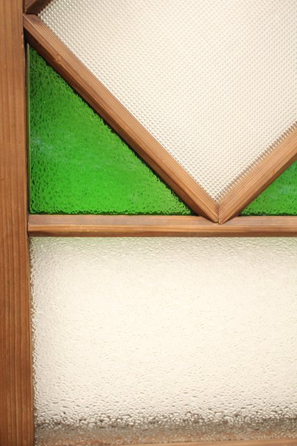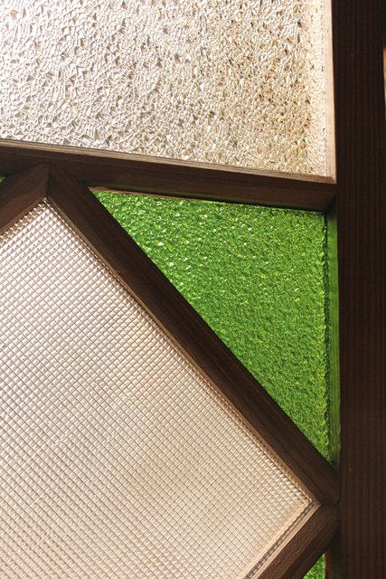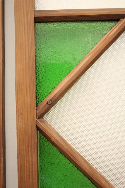 緑色の華やかな色ガラスを使用した建具