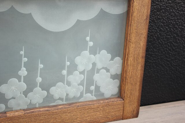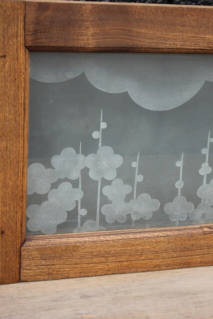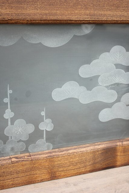 ガラスに彫りこみの入ったもの