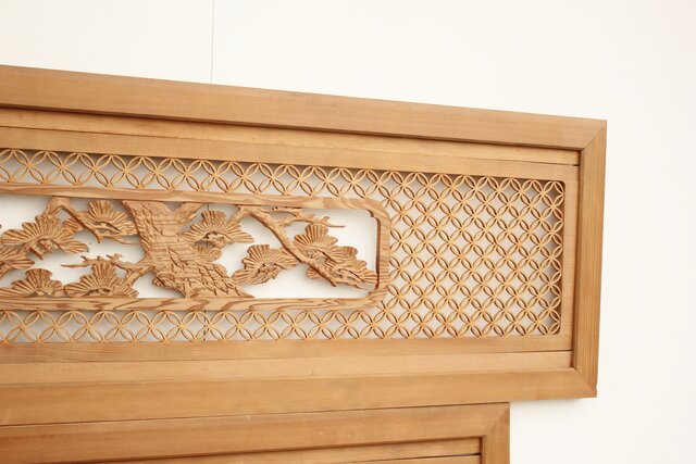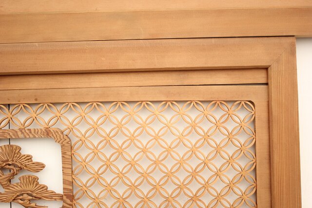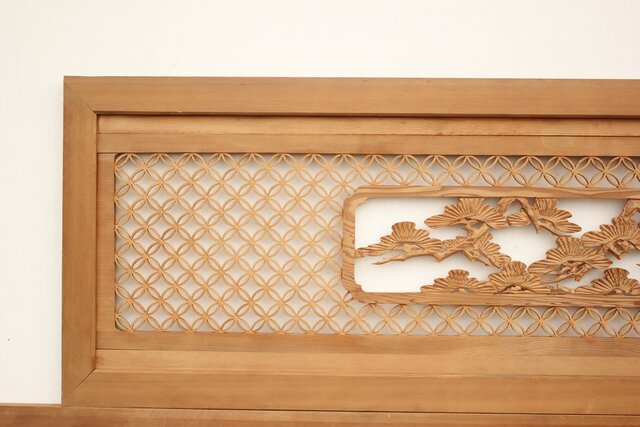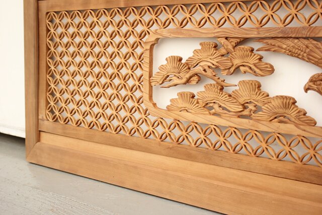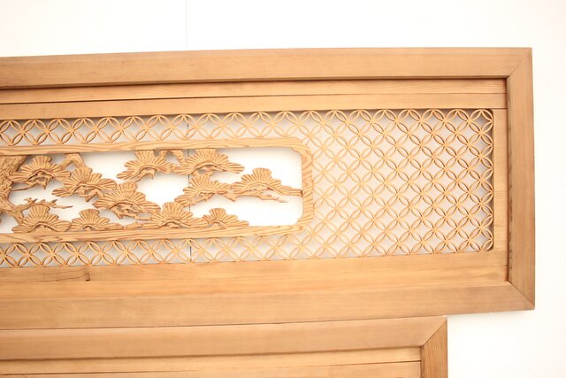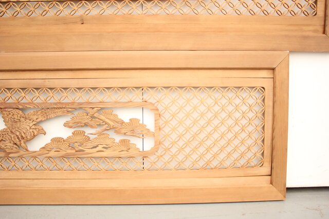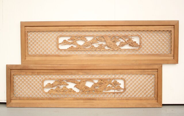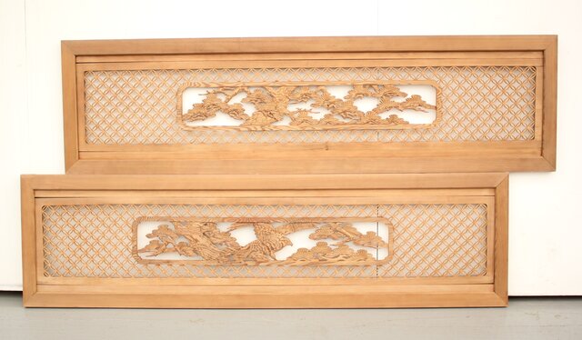 七宝組子と木彫の欄間 2枚1組 R2382