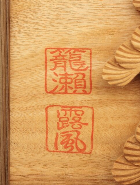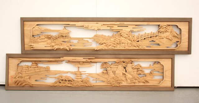 籠瀬露風 神代杉枠 楠木彫欄間 2枚1組 R2499Y