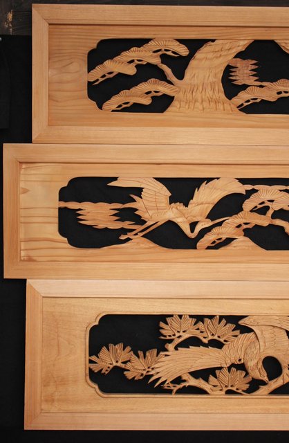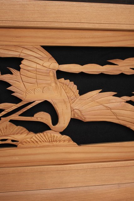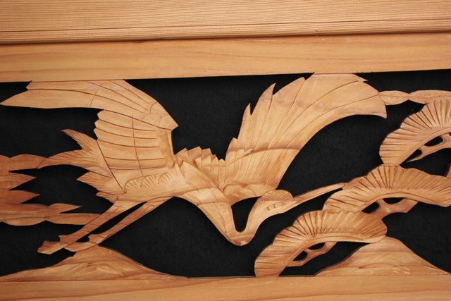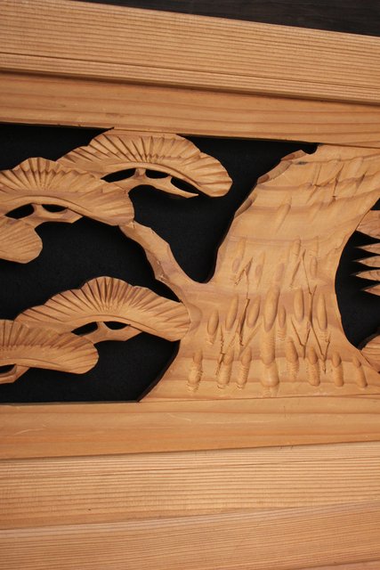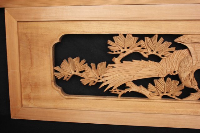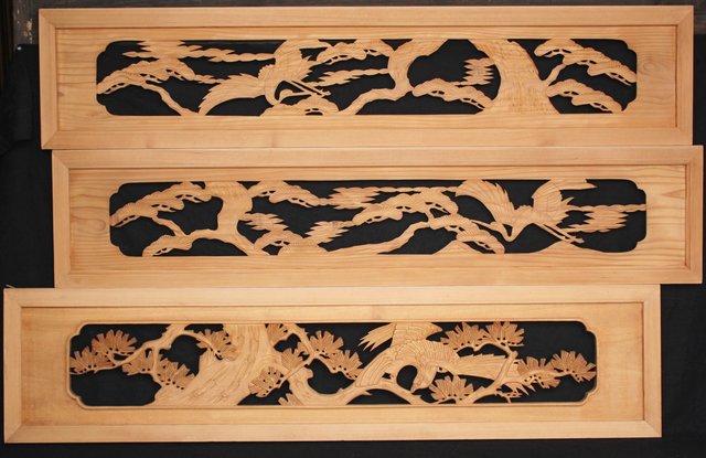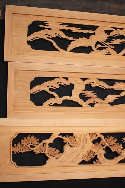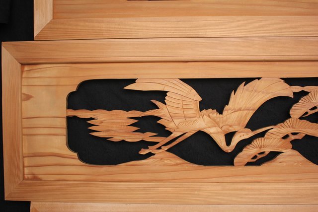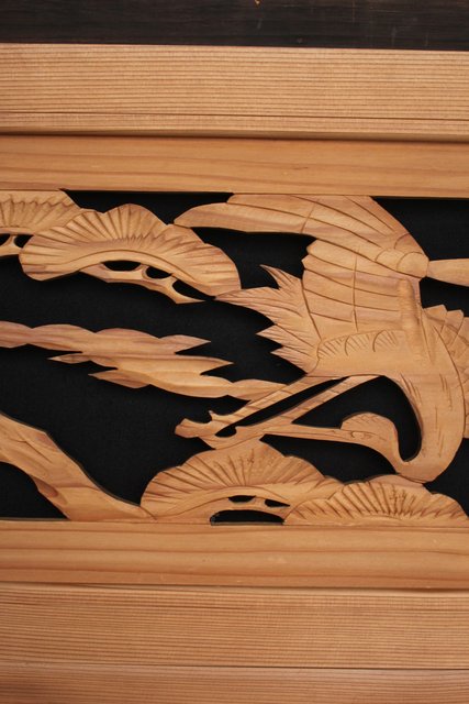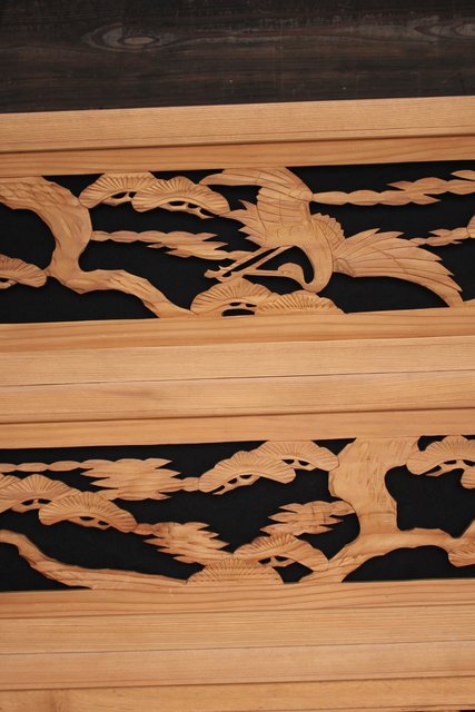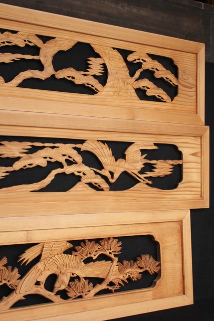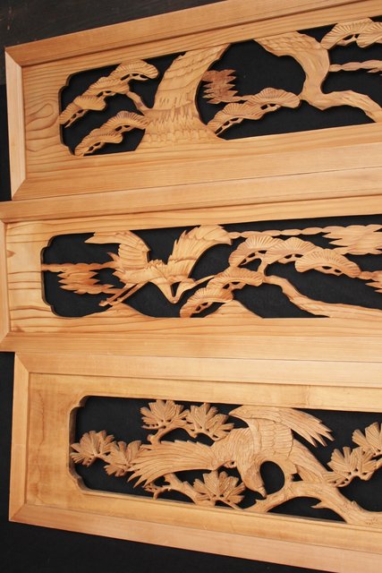 鶴松が2枚に鷹松が多種雄深彫の井波系欄間になります