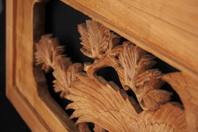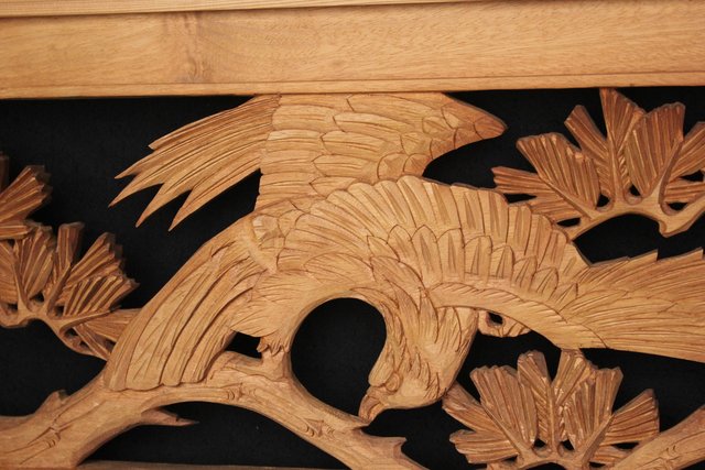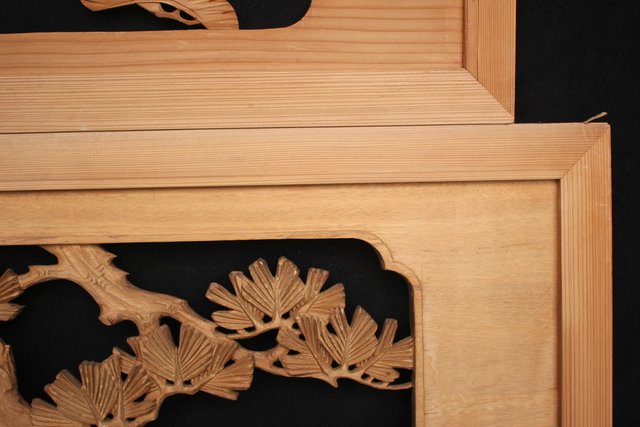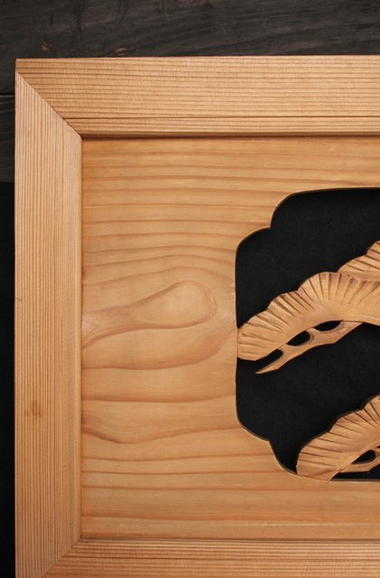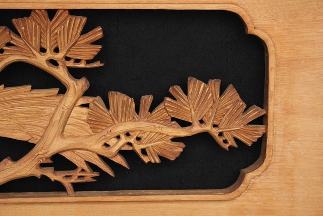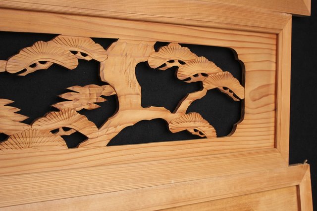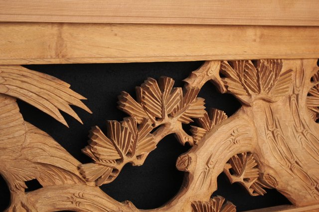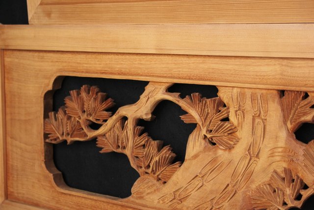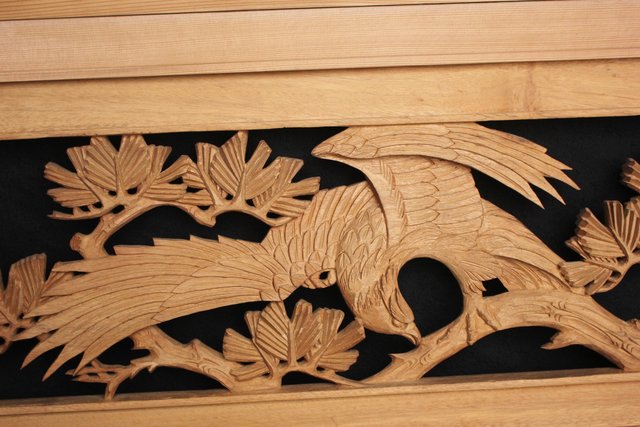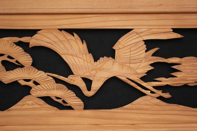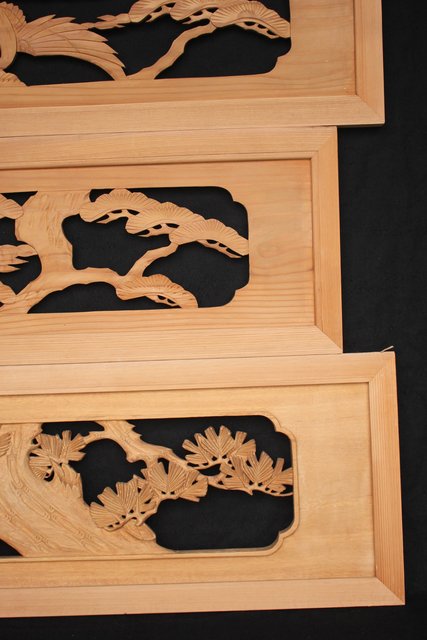 鶴松が2枚に鷹松が多種雄深彫の井波系欄間になります