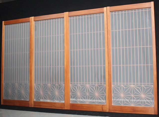 麻の葉組子書院 片面ガラス 4枚1組 R2518