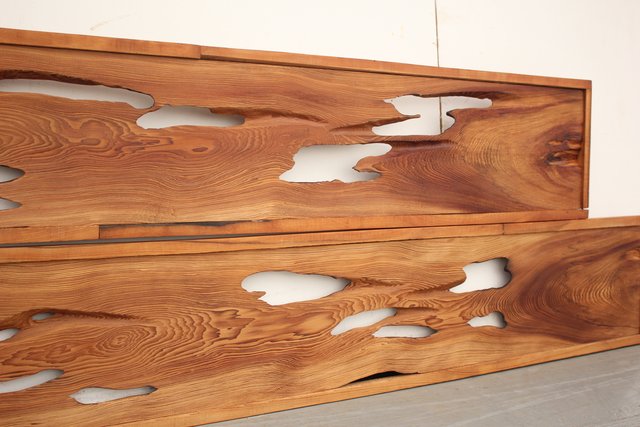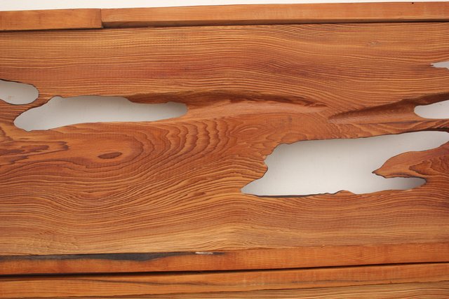 虫食いや朽ちの意匠表現が素敵な欄間