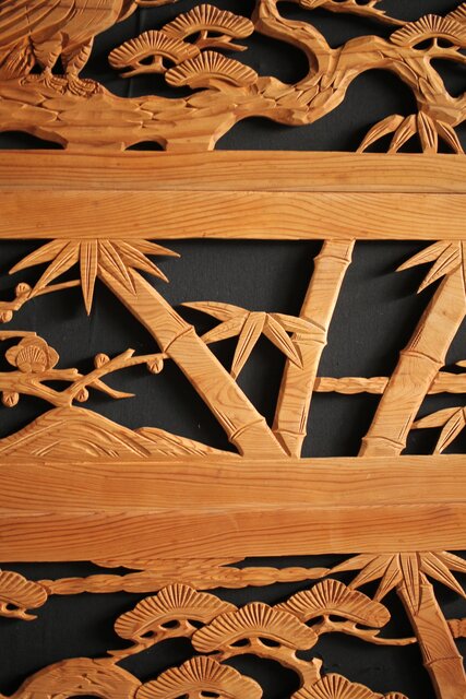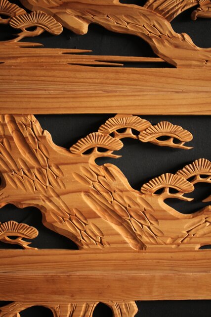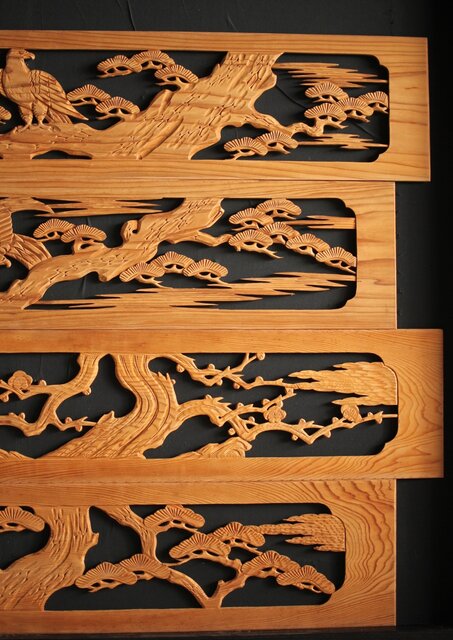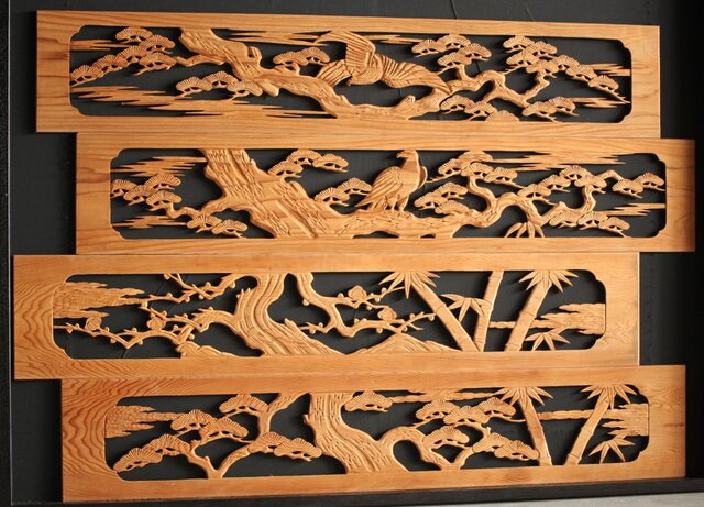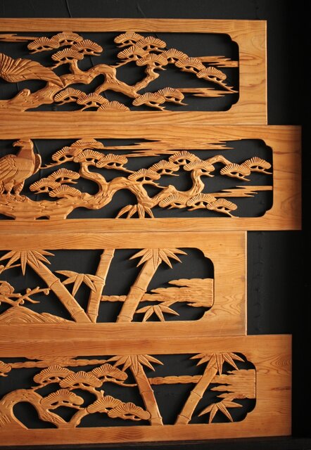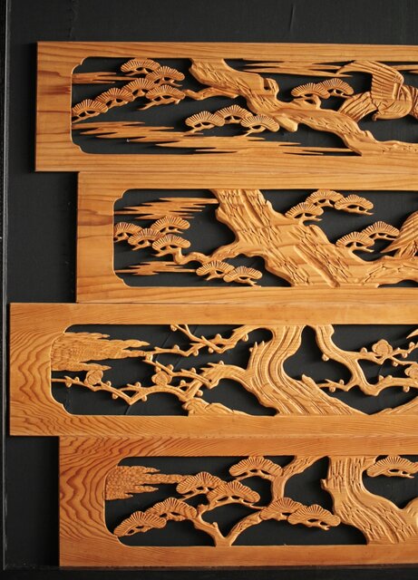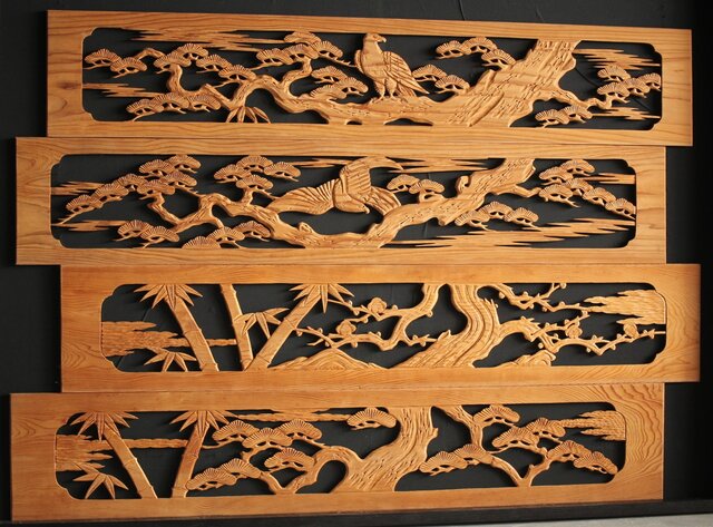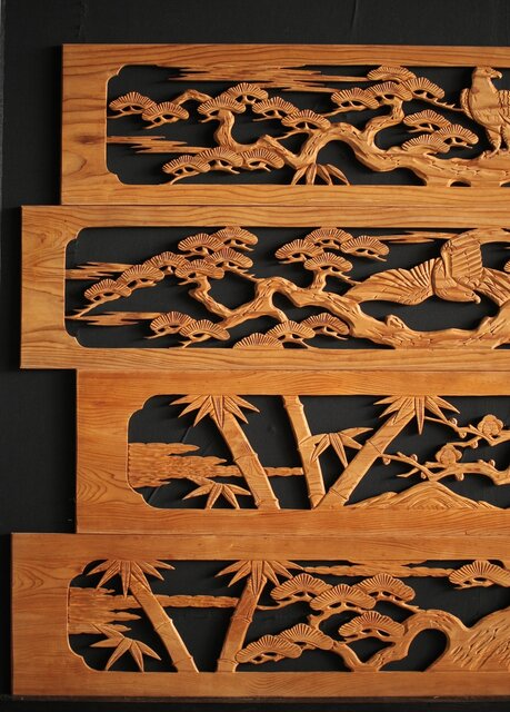 枠無 木彫欄間 4枚1組 R0016
