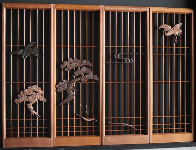 鶴の木彫書院 4枚1組 R0020