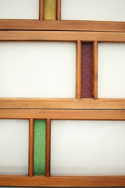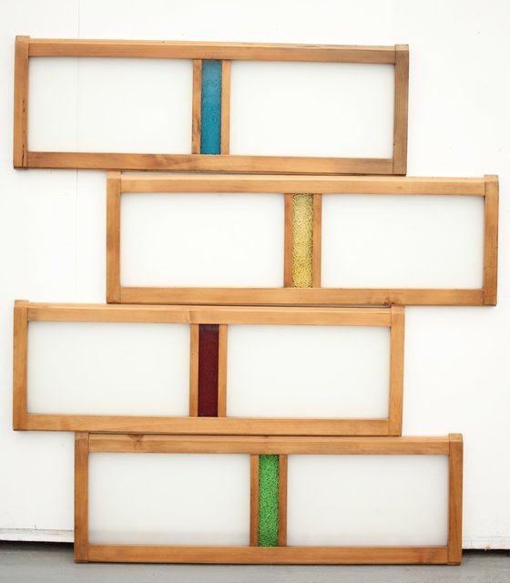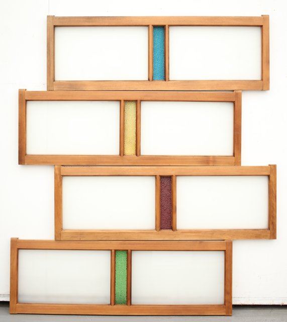 4色ガラスの欄間/明り取り 4枚1組 R0038Y