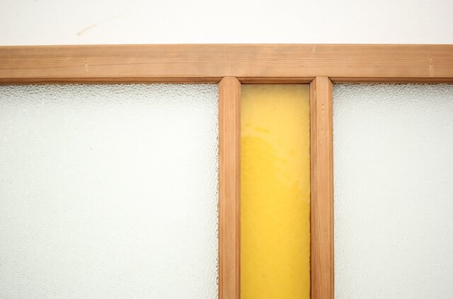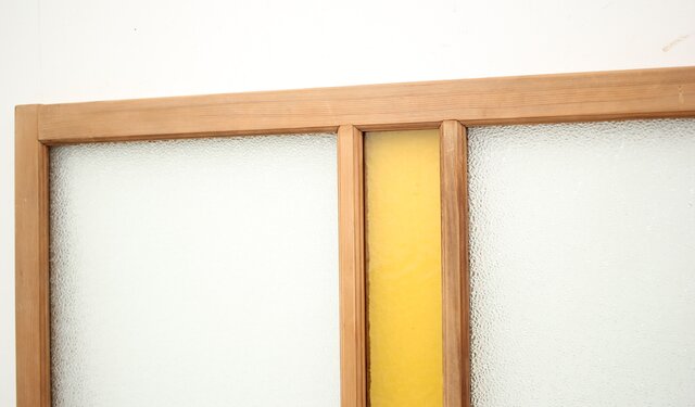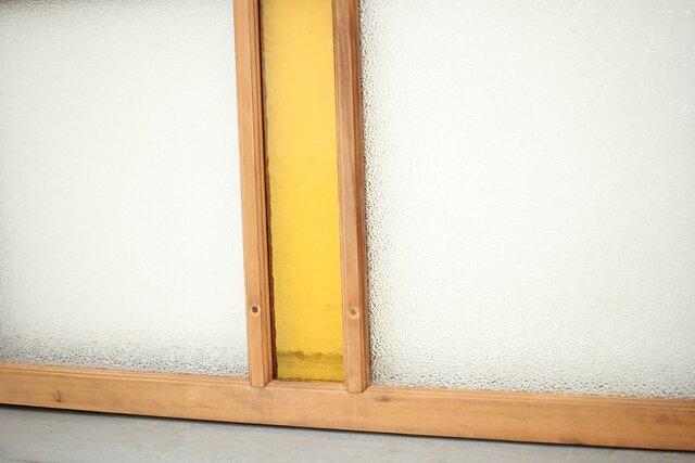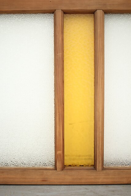 白木の框に ダイアガラスと石目の黄色ガラス