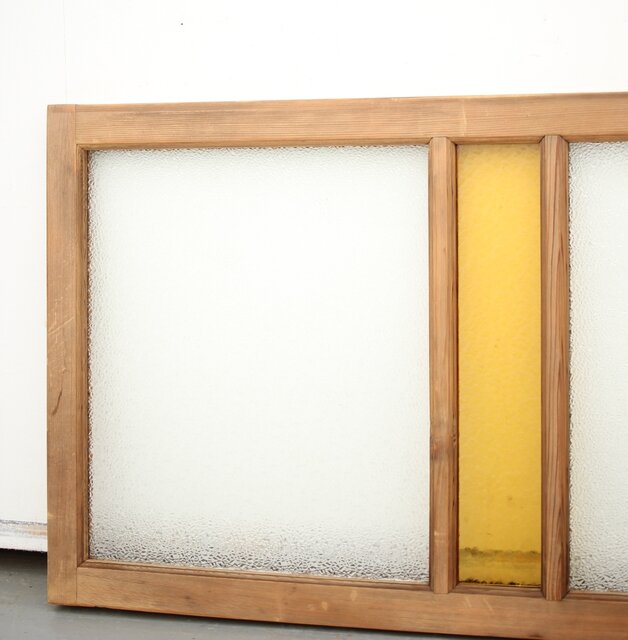 ダイアと黄色ガラスの欄間/明り取りL R0047 レトロな石目ガラス