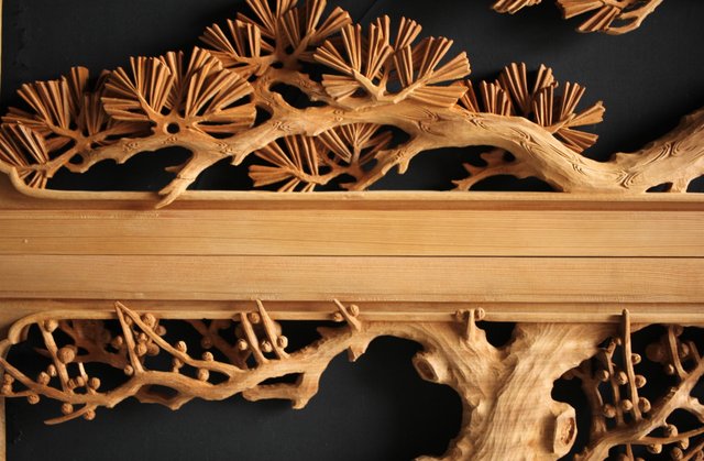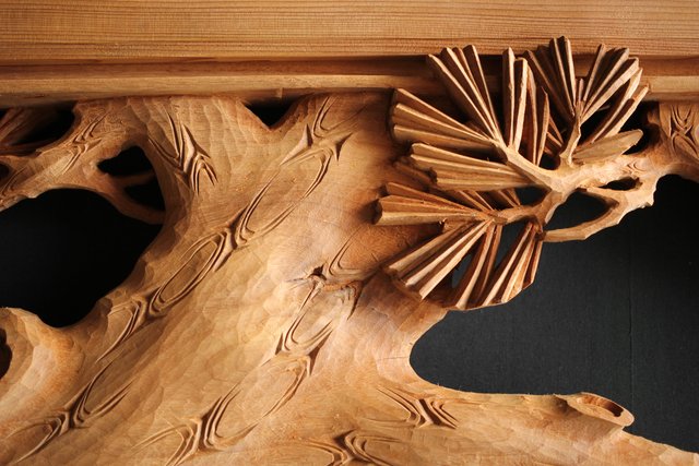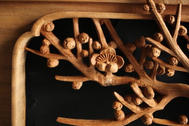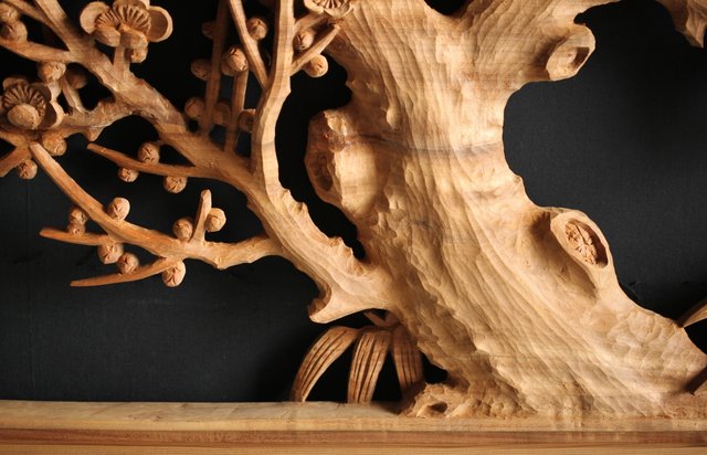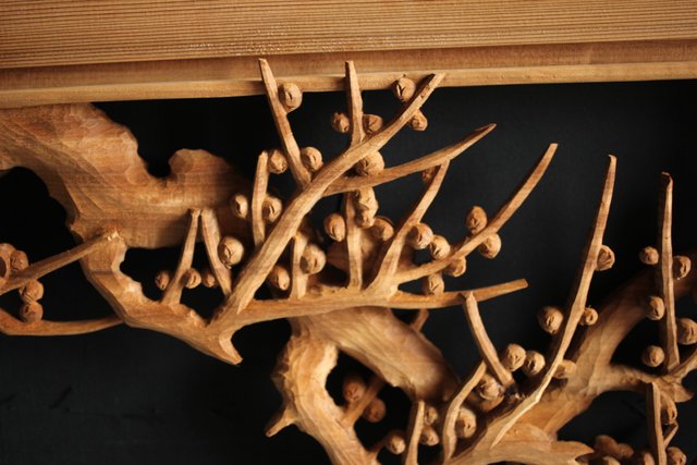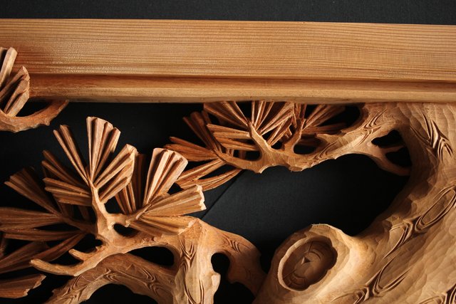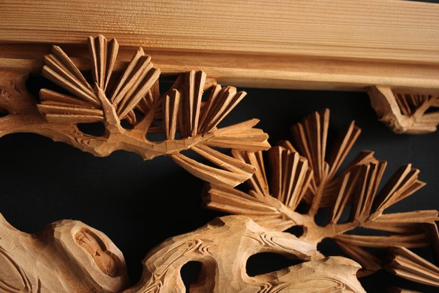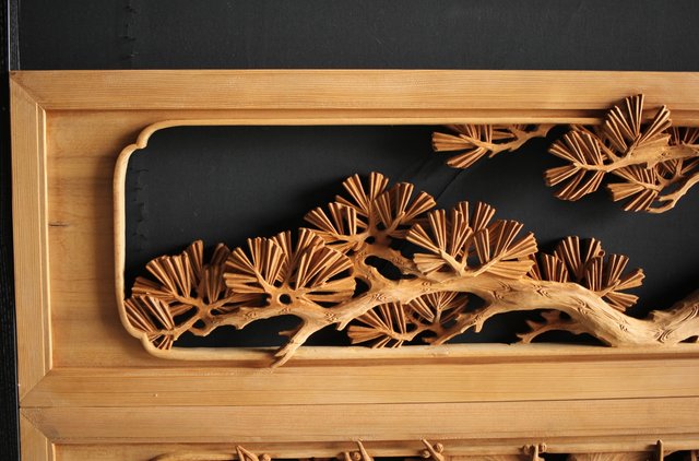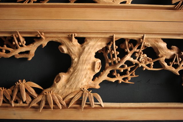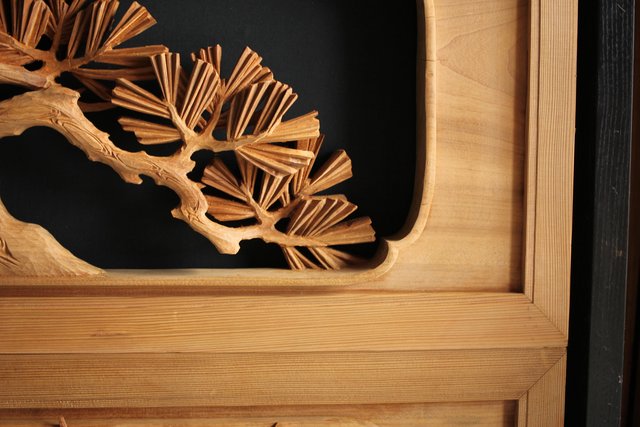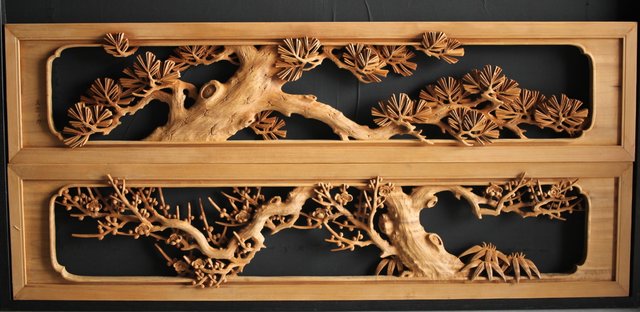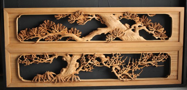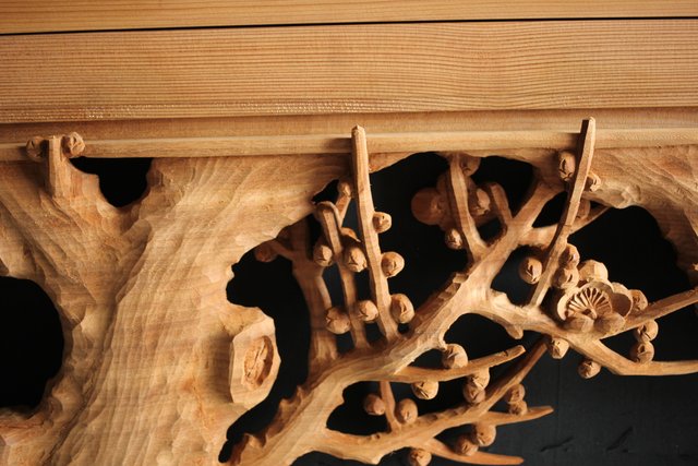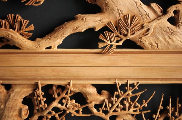 大雲銘 松竹梅深彫木彫欄間 2枚1組 R0050Y