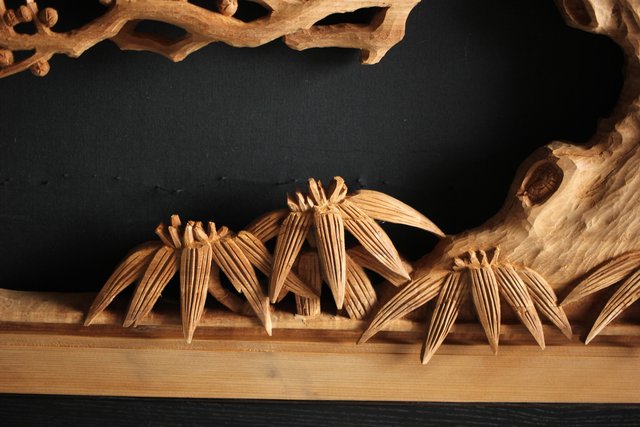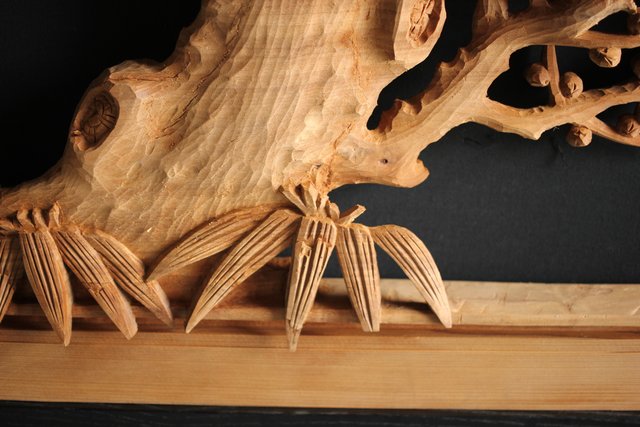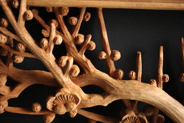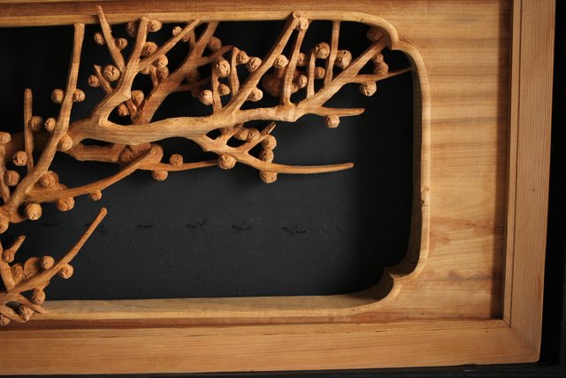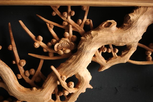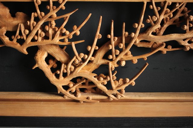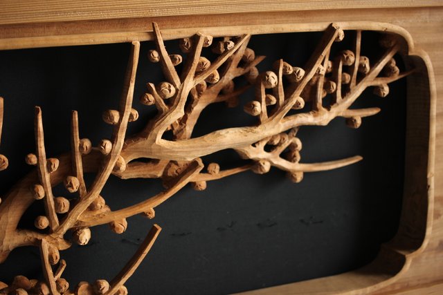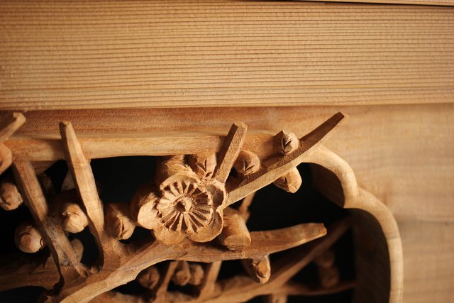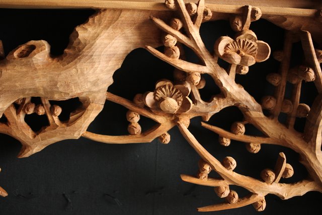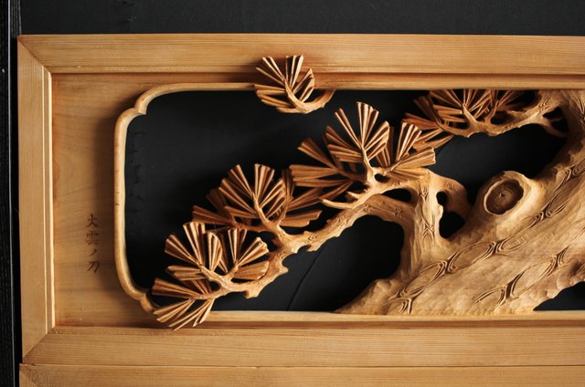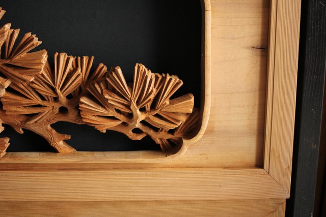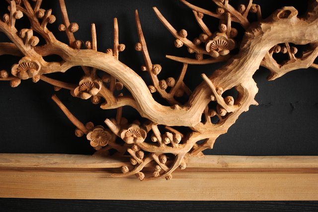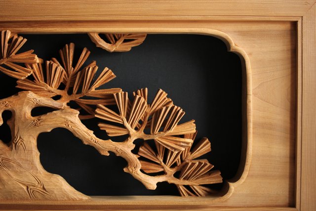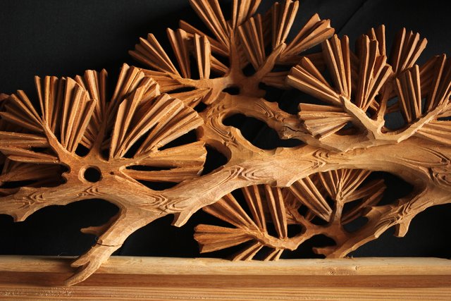 大雲銘 松竹梅深彫木彫欄間 2枚1組 R0050Y