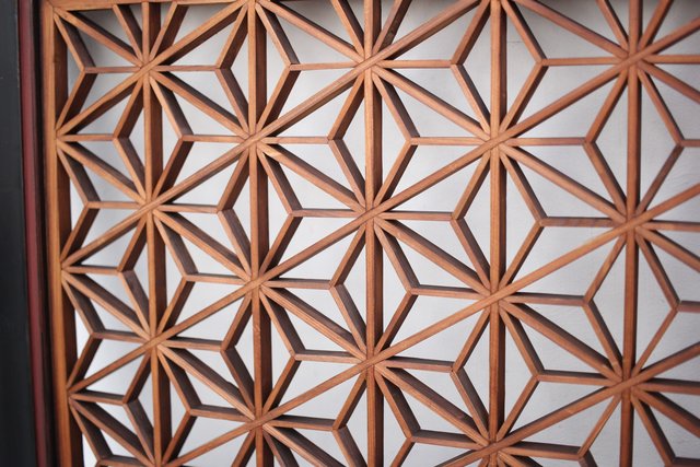麻模様の組子がびっしと入った欄間