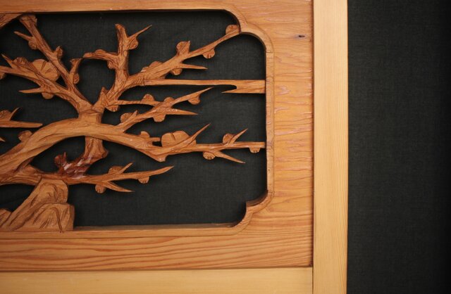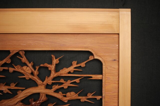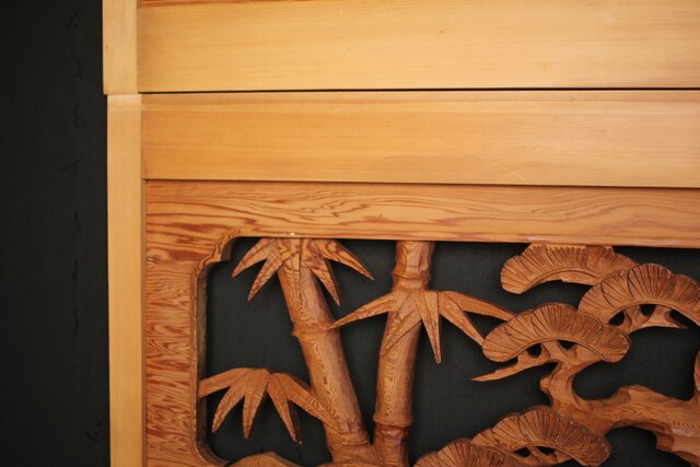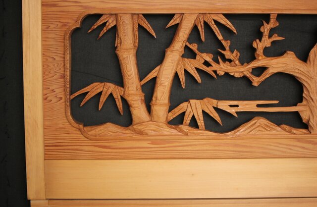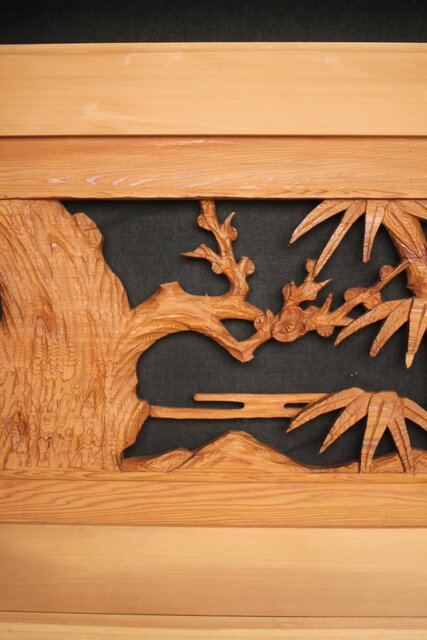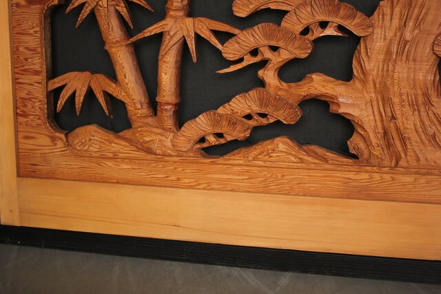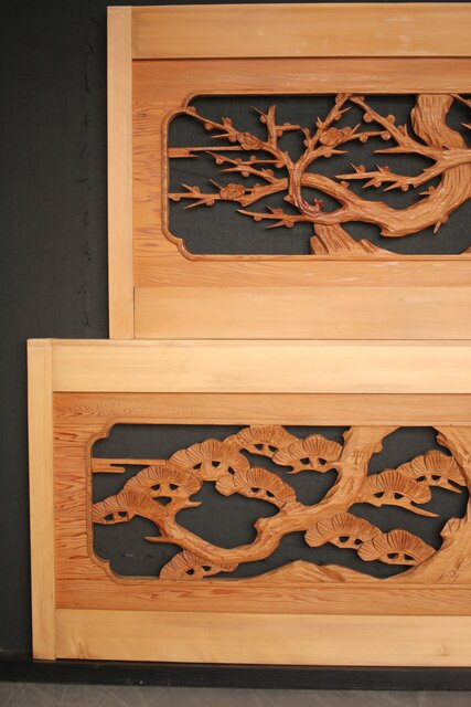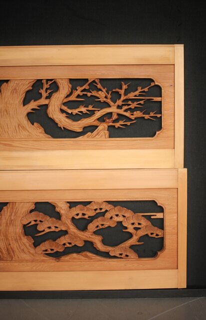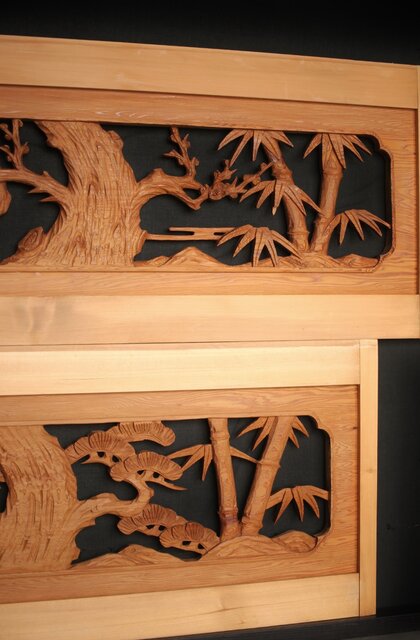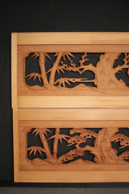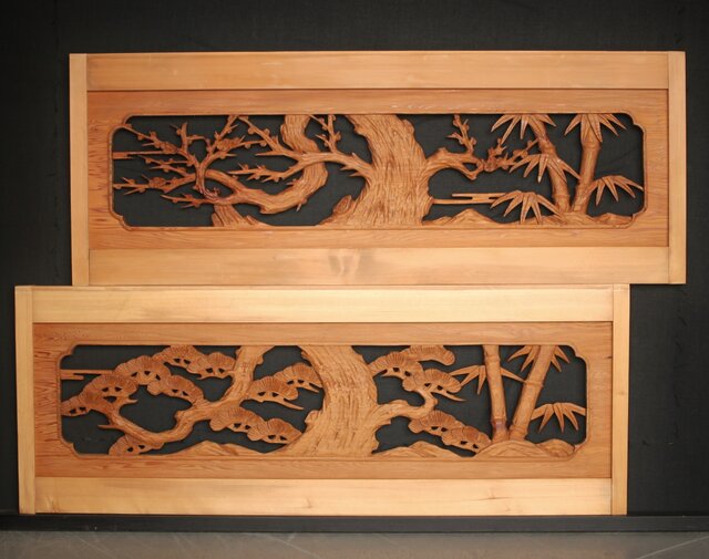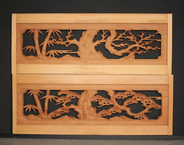松竹梅 中型木彫欄間 2枚1組 R0031