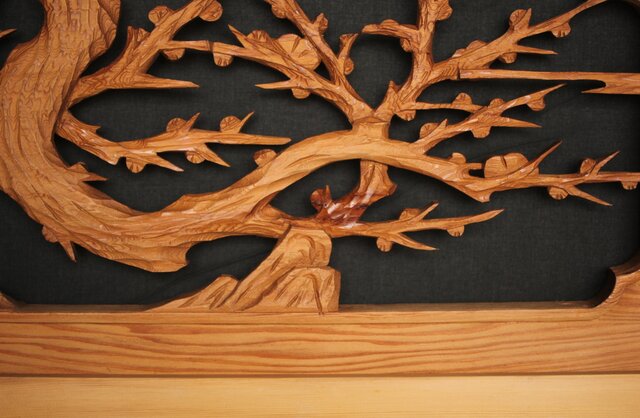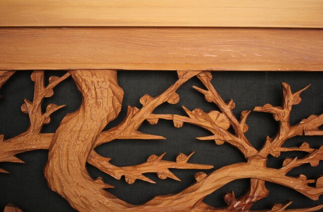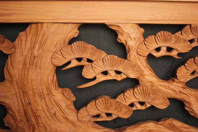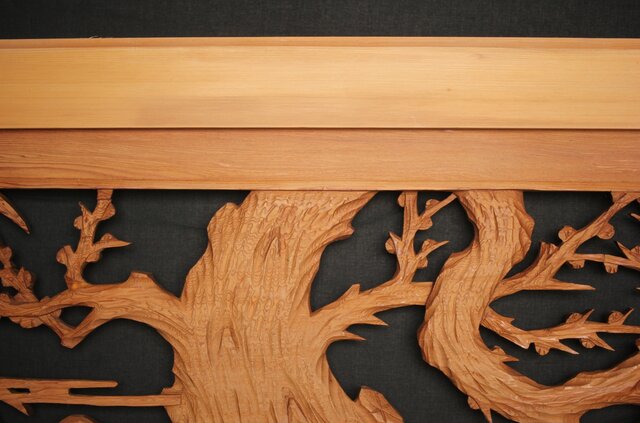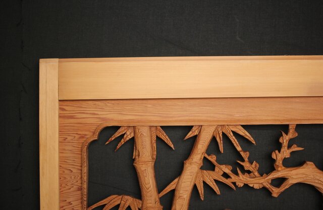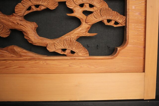 框の太い迫力のある木彫欄間