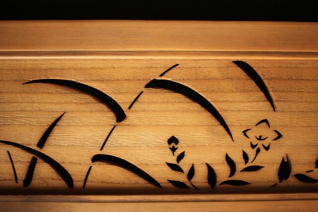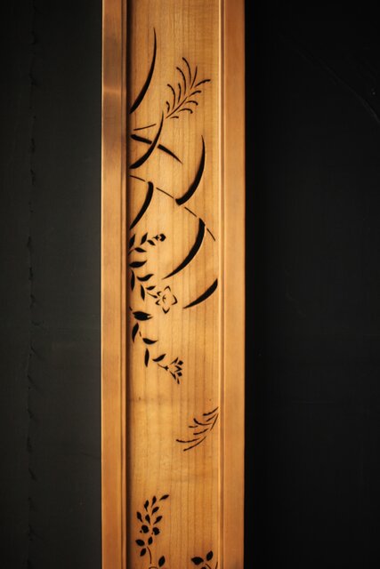 秋草の透かしが洒落た欄間