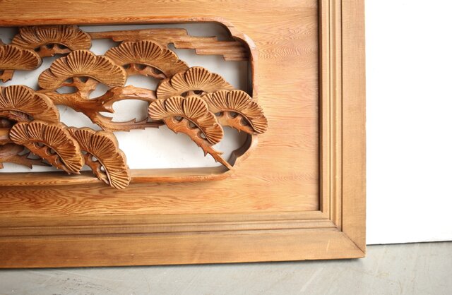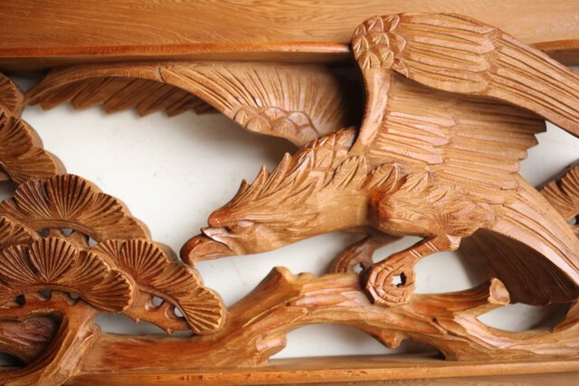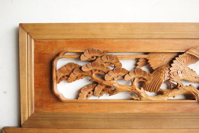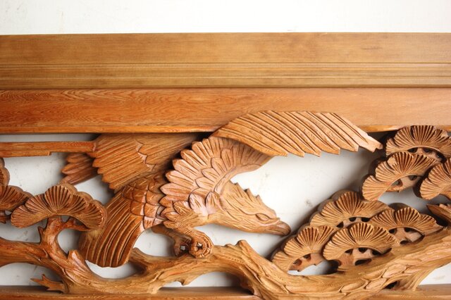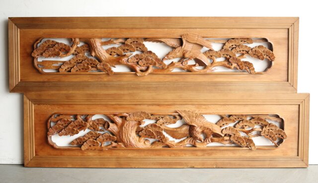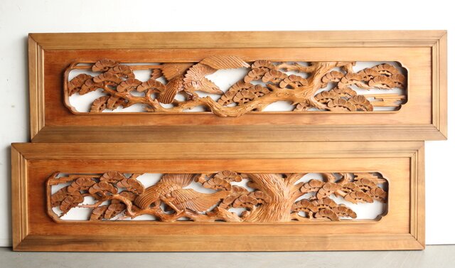 深彫 鷹松木彫欄間 2枚1組 R0161