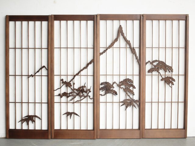松竹梅に山景 書院 4枚1組 R0166