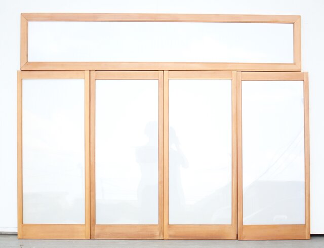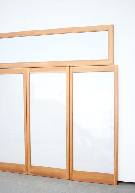 乳白色アクリルとクリアガラス 白木書院欄間 5枚1組 R0170