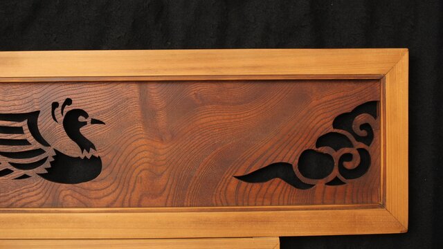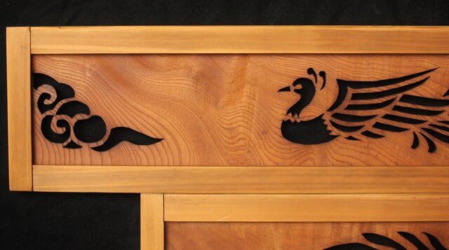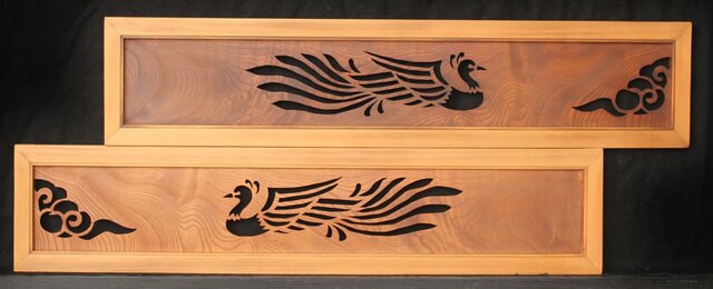 鳳凰透かし 小型欄間 2枚1組 R0279 堅木に彫り出した模様