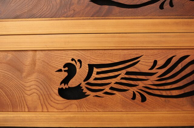 堅木(欅系)に彫り出した 鳳凰模様
