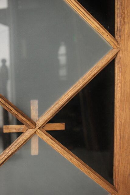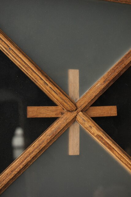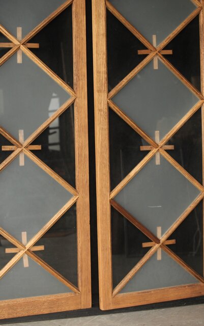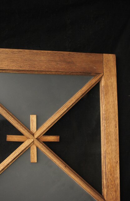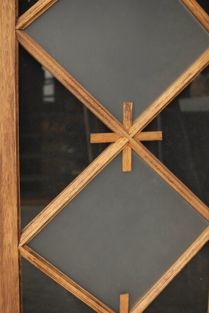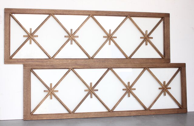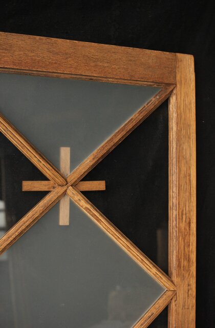 市松模様 菱形デザインガラス欄間 2枚1組 R0283 いわゆる とんぼ組子 でしょうか 古典です