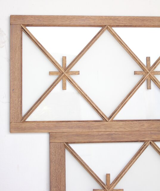 市松模様 菱形デザインガラス欄間 2枚1組 R0283 材はラワンと思われますが 白木が素敵です