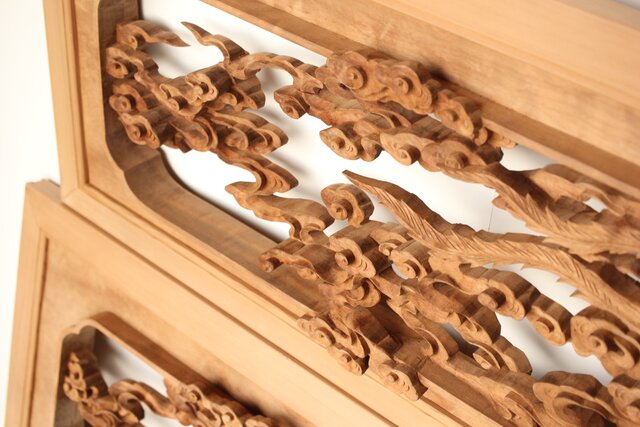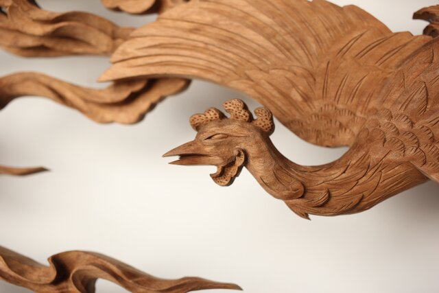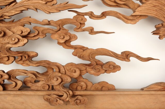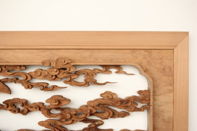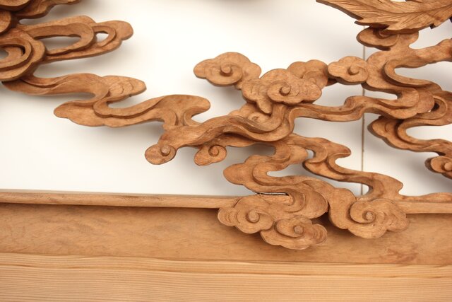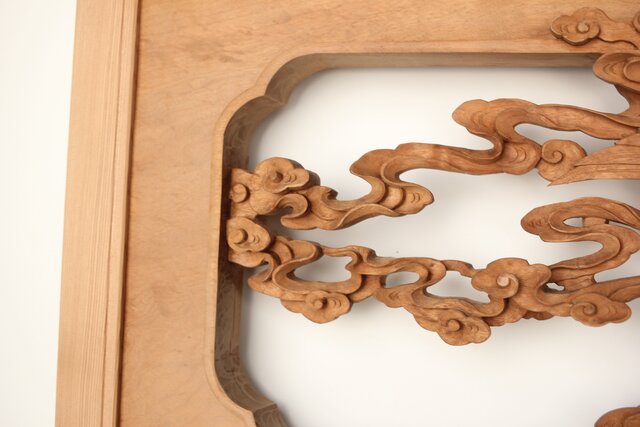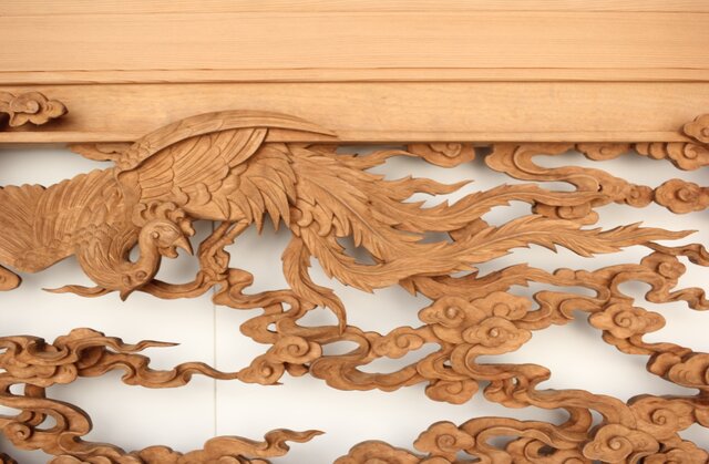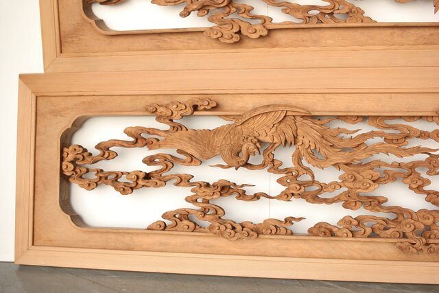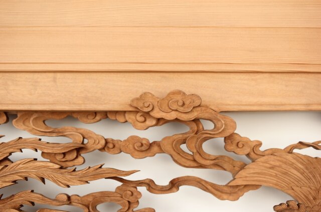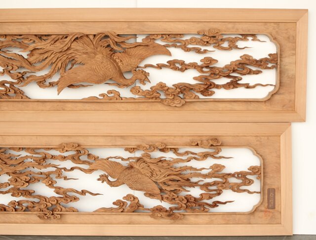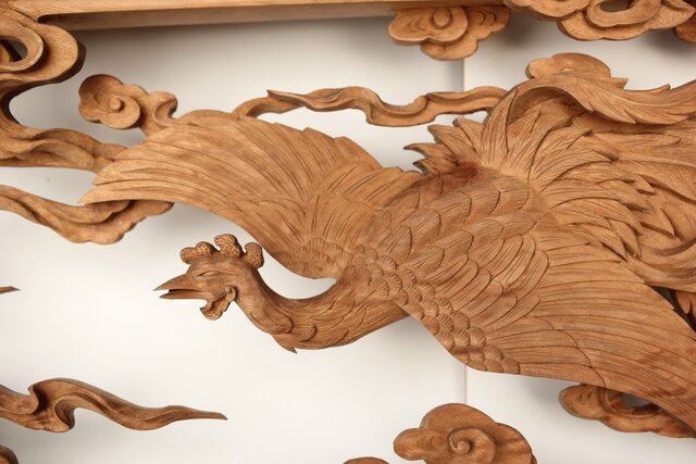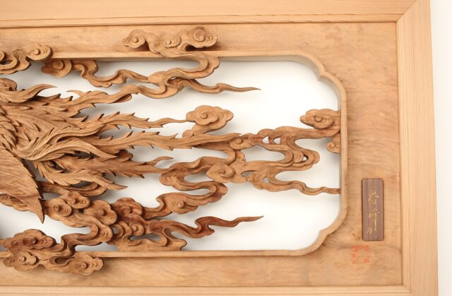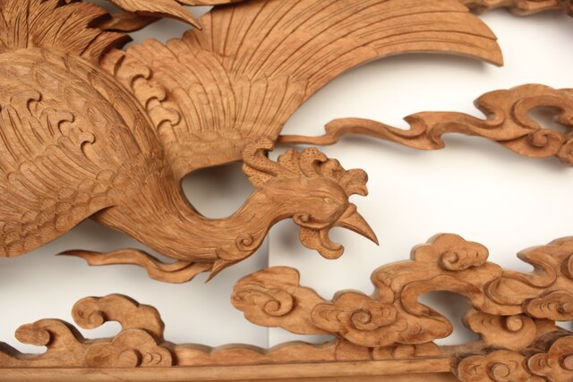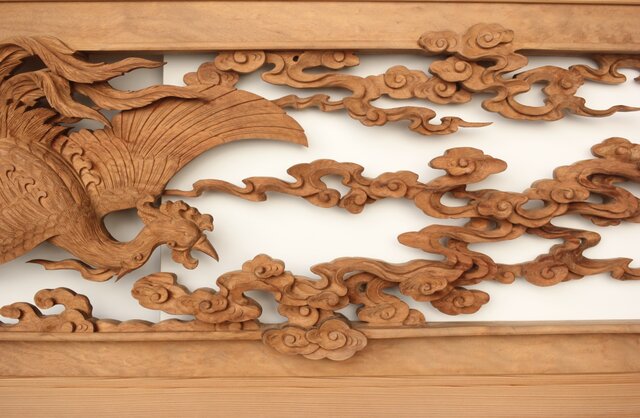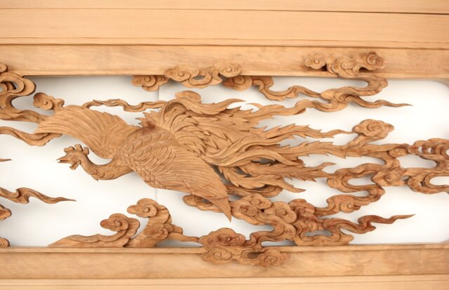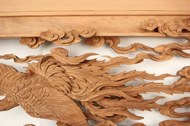 枠からはみ出した雲の表現や 鳳凰の掘り込みも見事