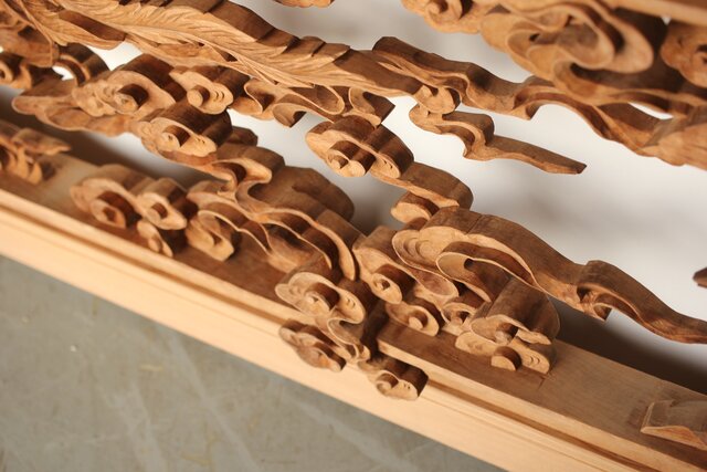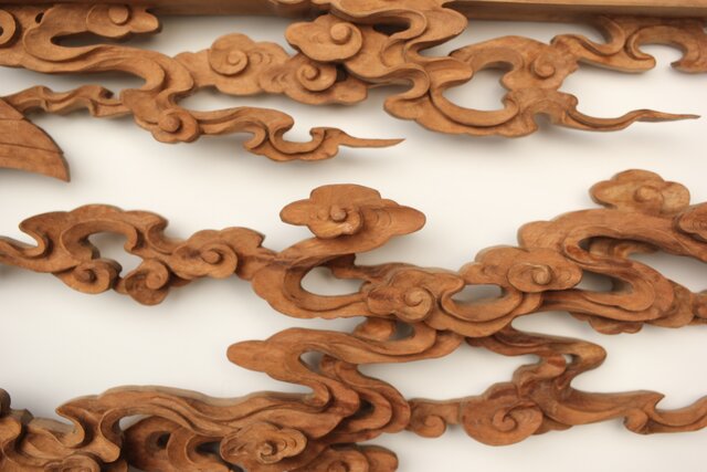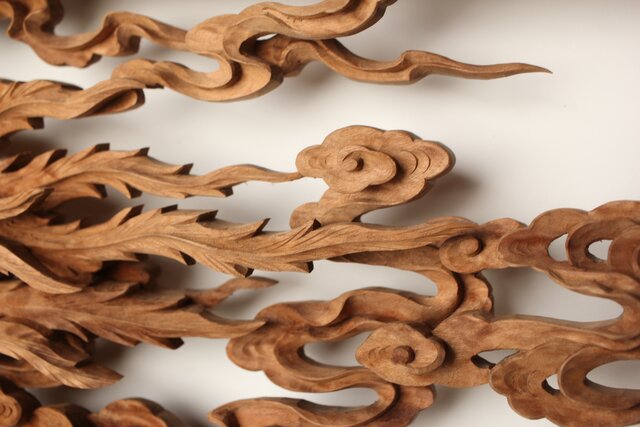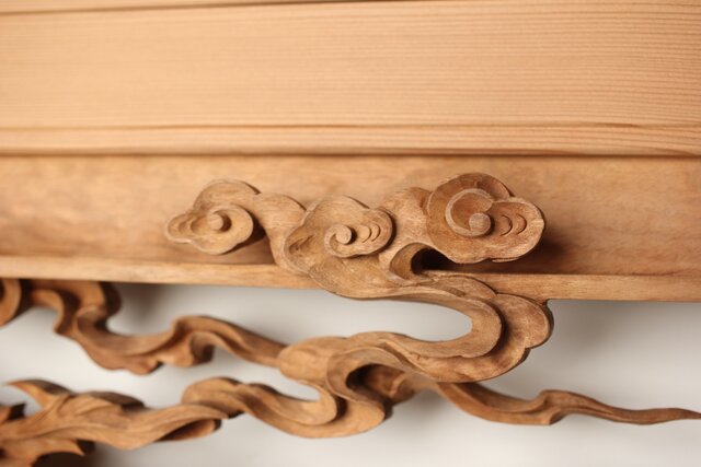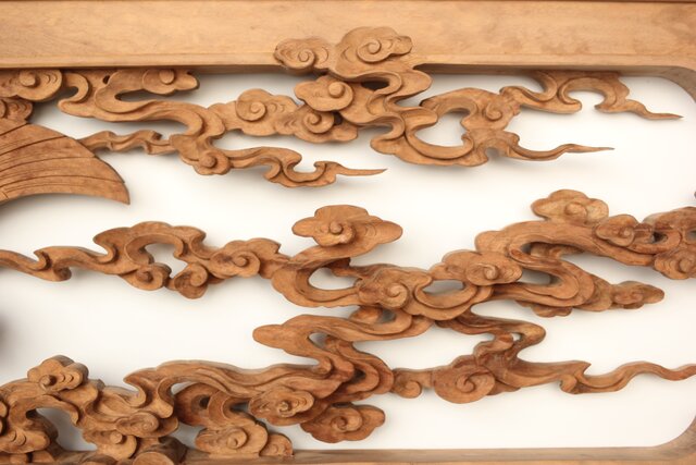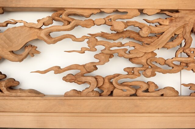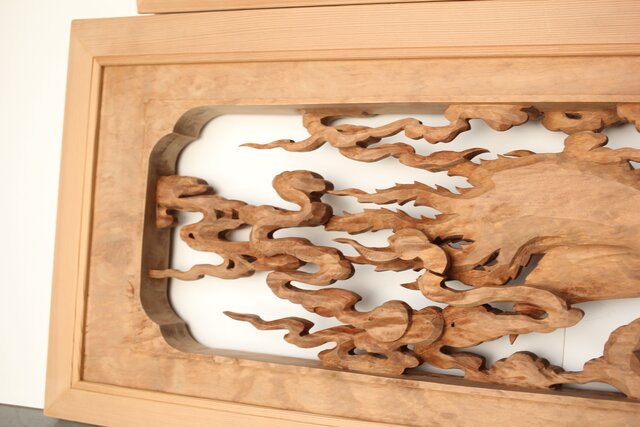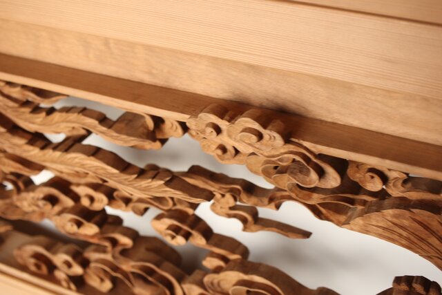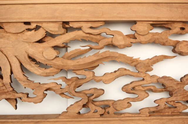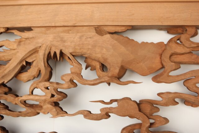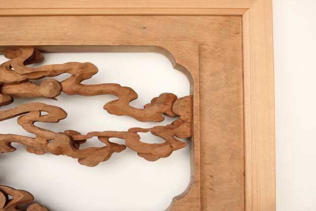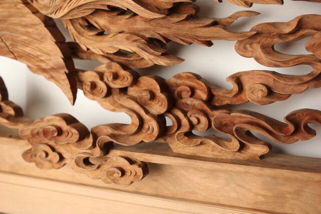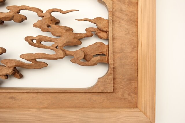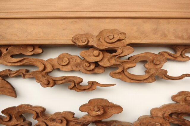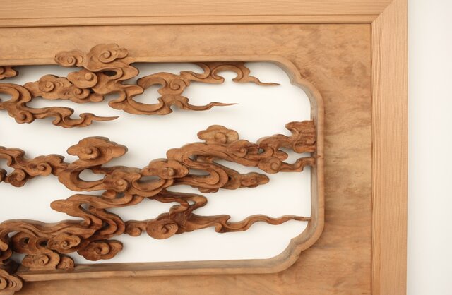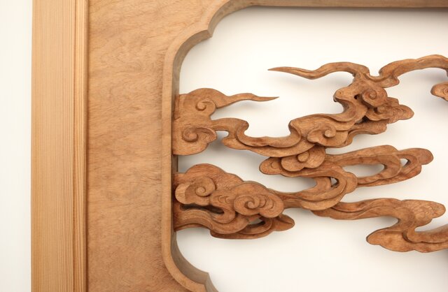 枠からはみ出した雲の表現や 鳳凰の掘り込みも見事