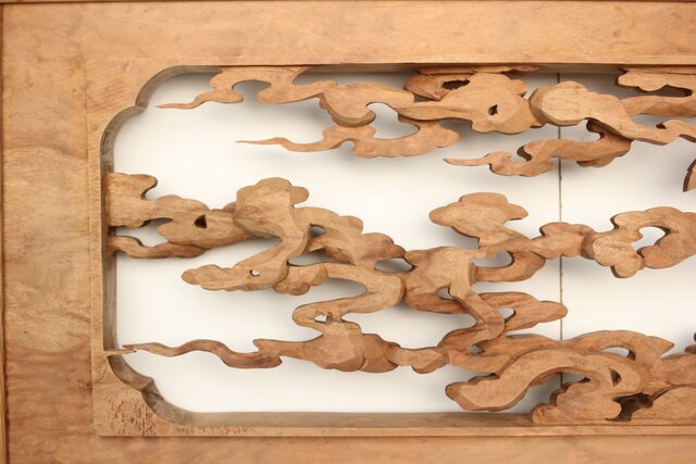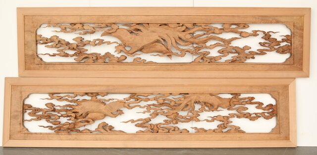 雲海鳳凰図 木彫欄間 2枚1組 R0288 表