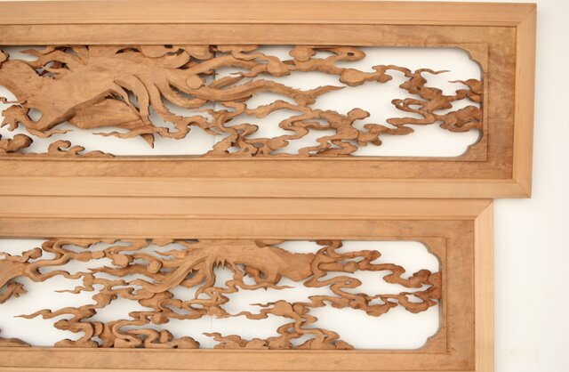見ごたえのある渾身の木彫欄間です