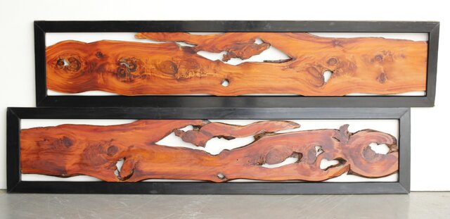 松一枚板 自然木欄間 2枚1組 R0322